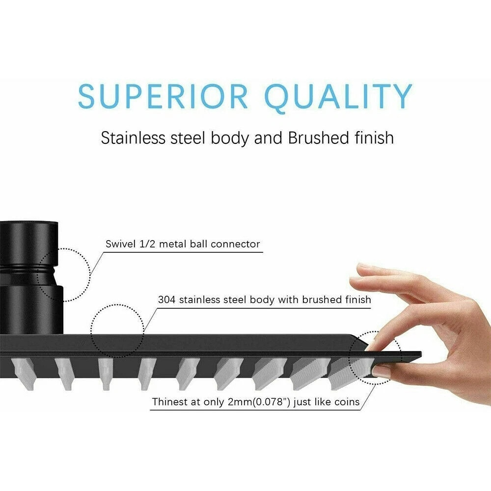 Capul de duș pătrat BisDesign® Ultra Slim, cu dimensiunea generoasă de 40 x 40 cm și finisaj premium negru mat, adaugă un plus de eleganță modernă și rafinament băii tale. Realizat din oțel inoxidabil de înaltă calitate, acest model se remarcă prin rezistență, durabilitate și un design minimalist ce transformă orice duș într-o experiență de relaxare.