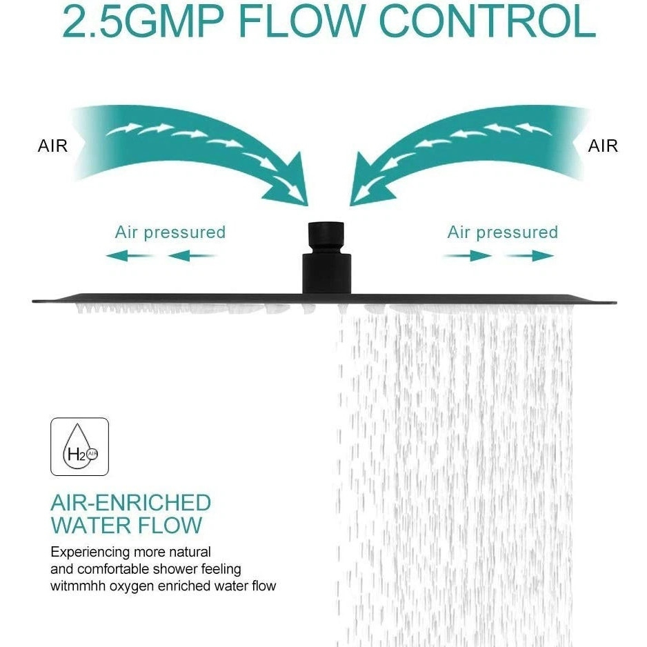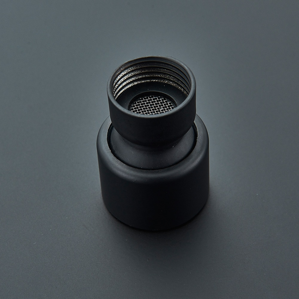Finisajul negru mat oferă un aspect sofisticat, fiind rezistent la amprente, zgârieturi și coroziune, păstrându-și frumusețea impecabilă chiar și la utilizare intensă. Distribuția uniformă a apei creează un jet amplu și natural, asemănător unei ploi relaxante.