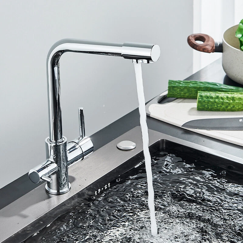 Această baterie este concepută pentru a oferi atât apă potabilă filtrată, cât și apă standard, printr-un sistem inteligent cu două circuite separate. Este soluția ideală pentru un stil de viață sănătos, eliminând necesitatea unui robinet suplimentar pentru filtrare.