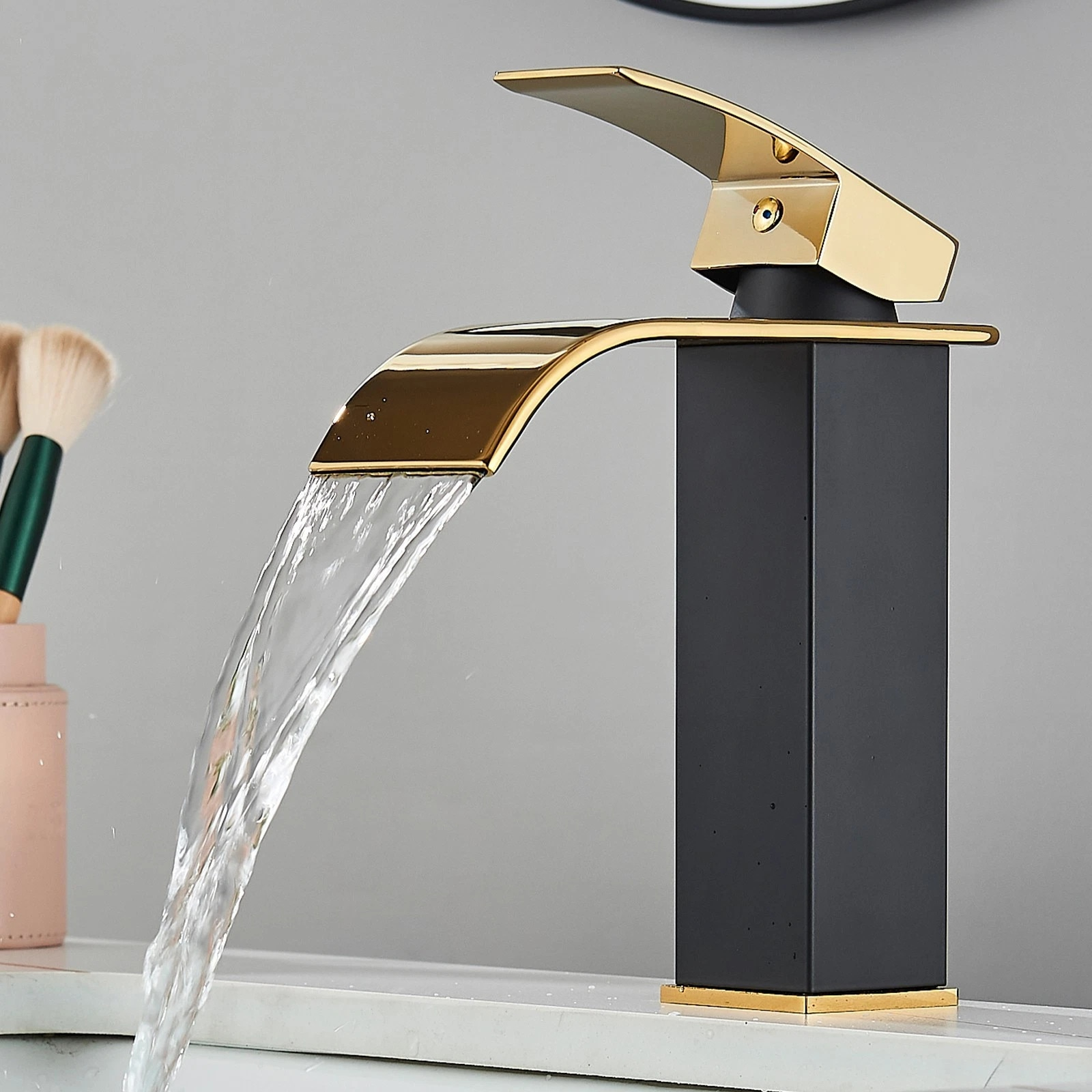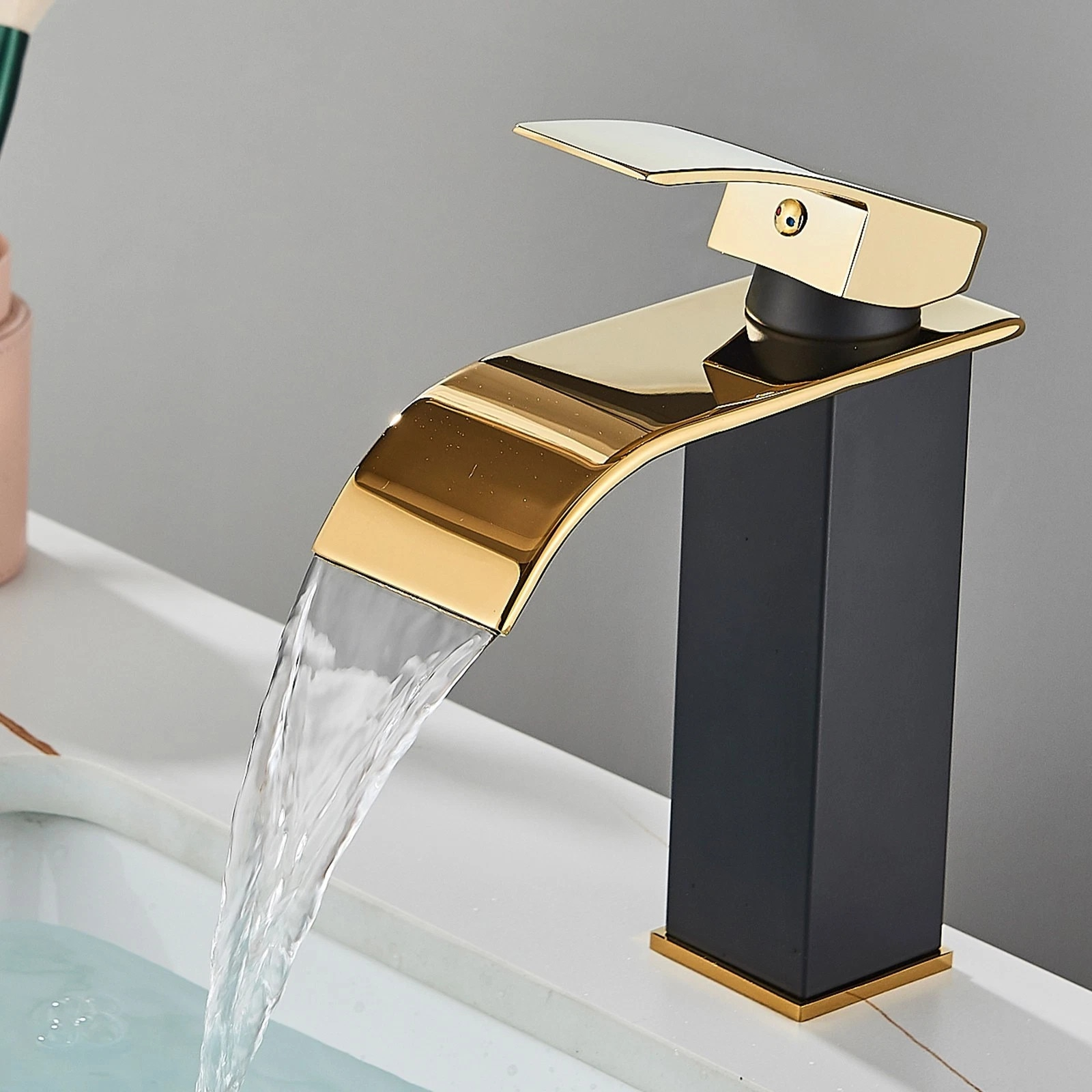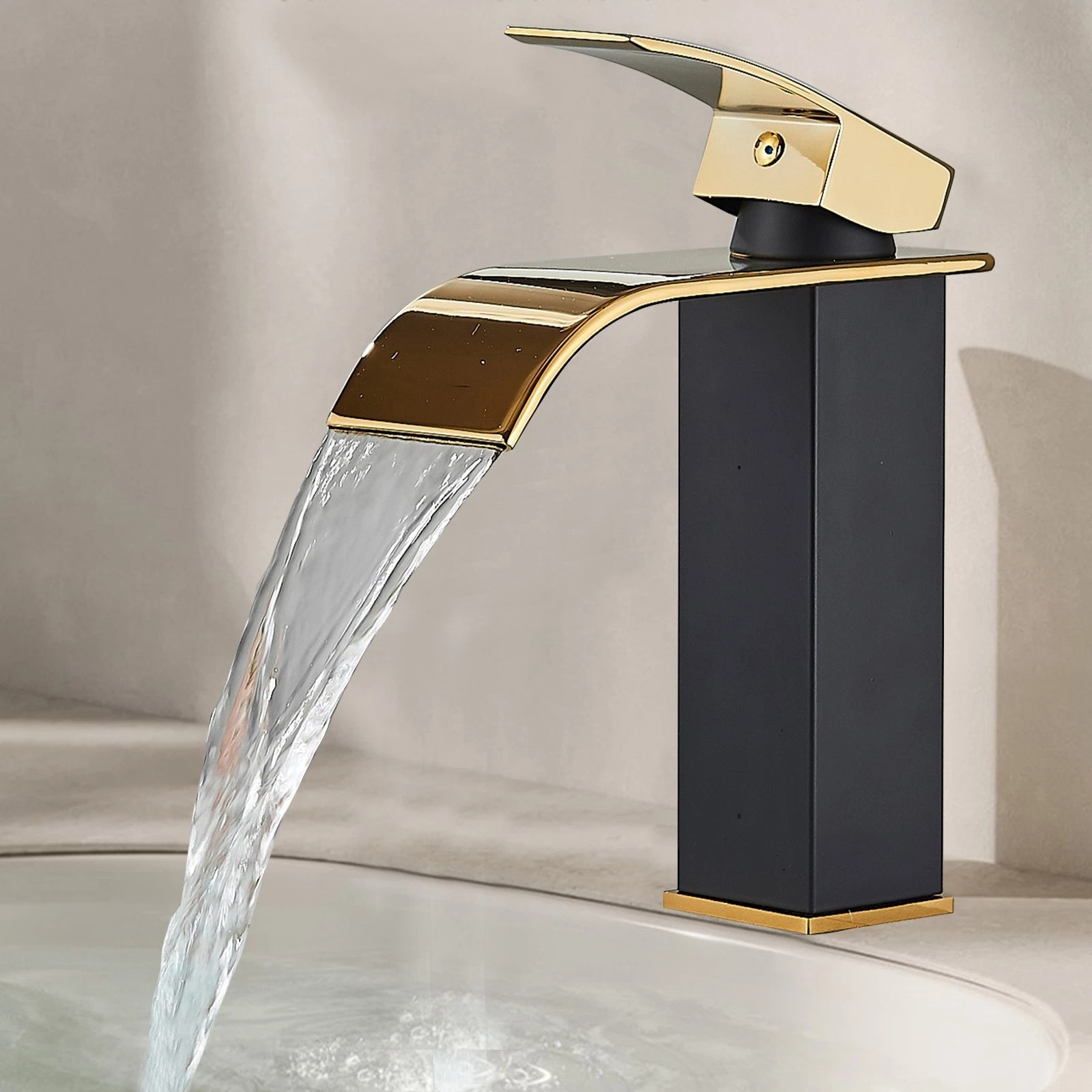 Această baterie de chiuvetă/lavoar BisDesign® aduce un aer modern și sofisticat băii tale, prin combinația elegantă dintre finisajul negru mat și accentele aurii. Designul pătrat, cu linii ferme și fluide în același timp, oferă un aspect contemporan deosebit, transformând bateria într-o adevărată piesă de design.