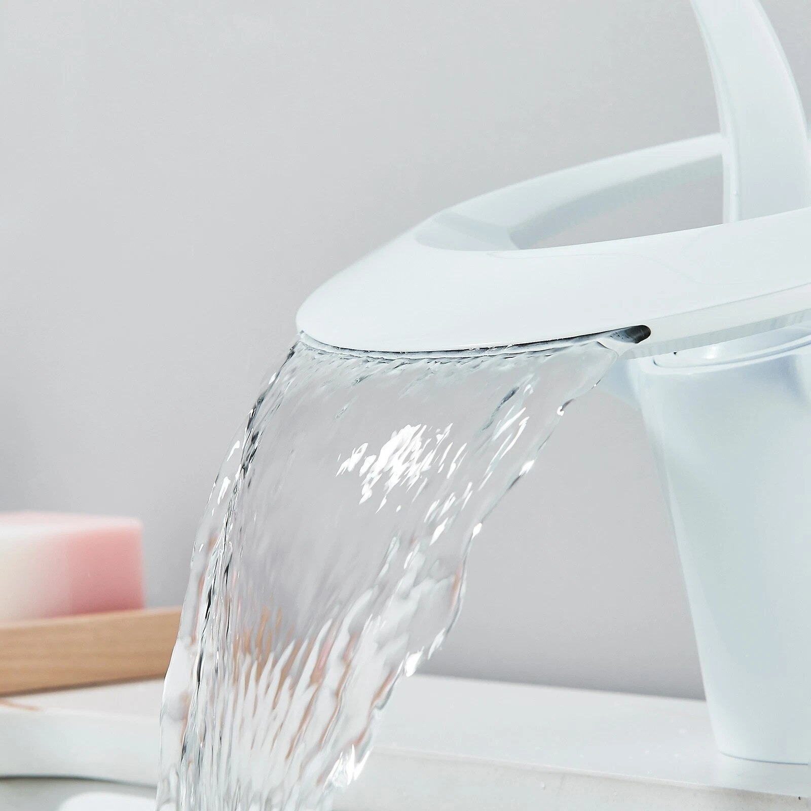 Această baterie de lavoar tip cascadă, realizată din alamă de înaltă calitate, impresionează prin designul său artistic inspirat de grația unei lebede și prin finisajul alb mat care adaugă un aer modern și sofisticat băii tale.