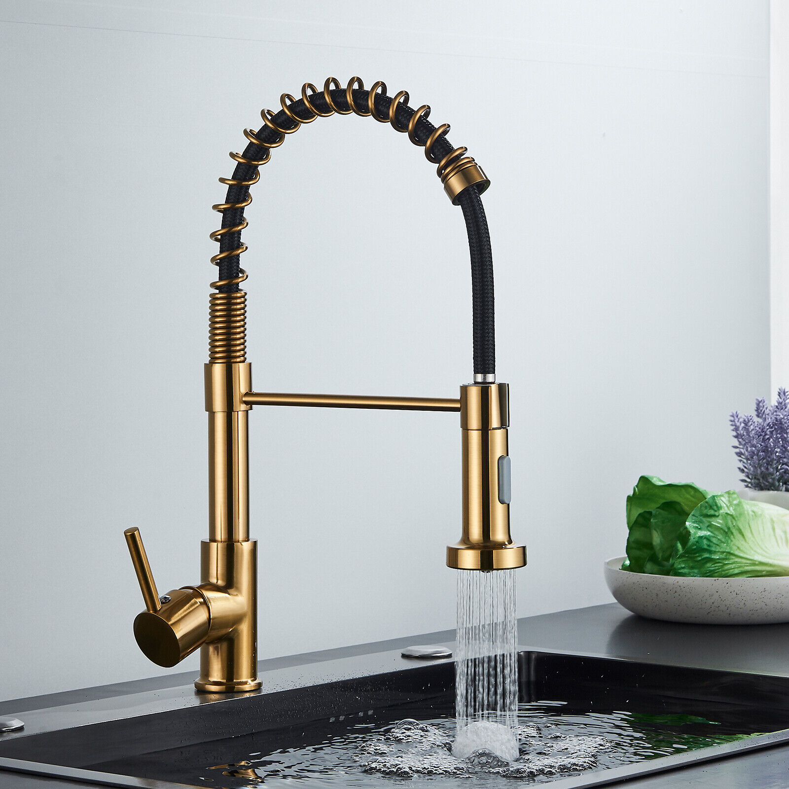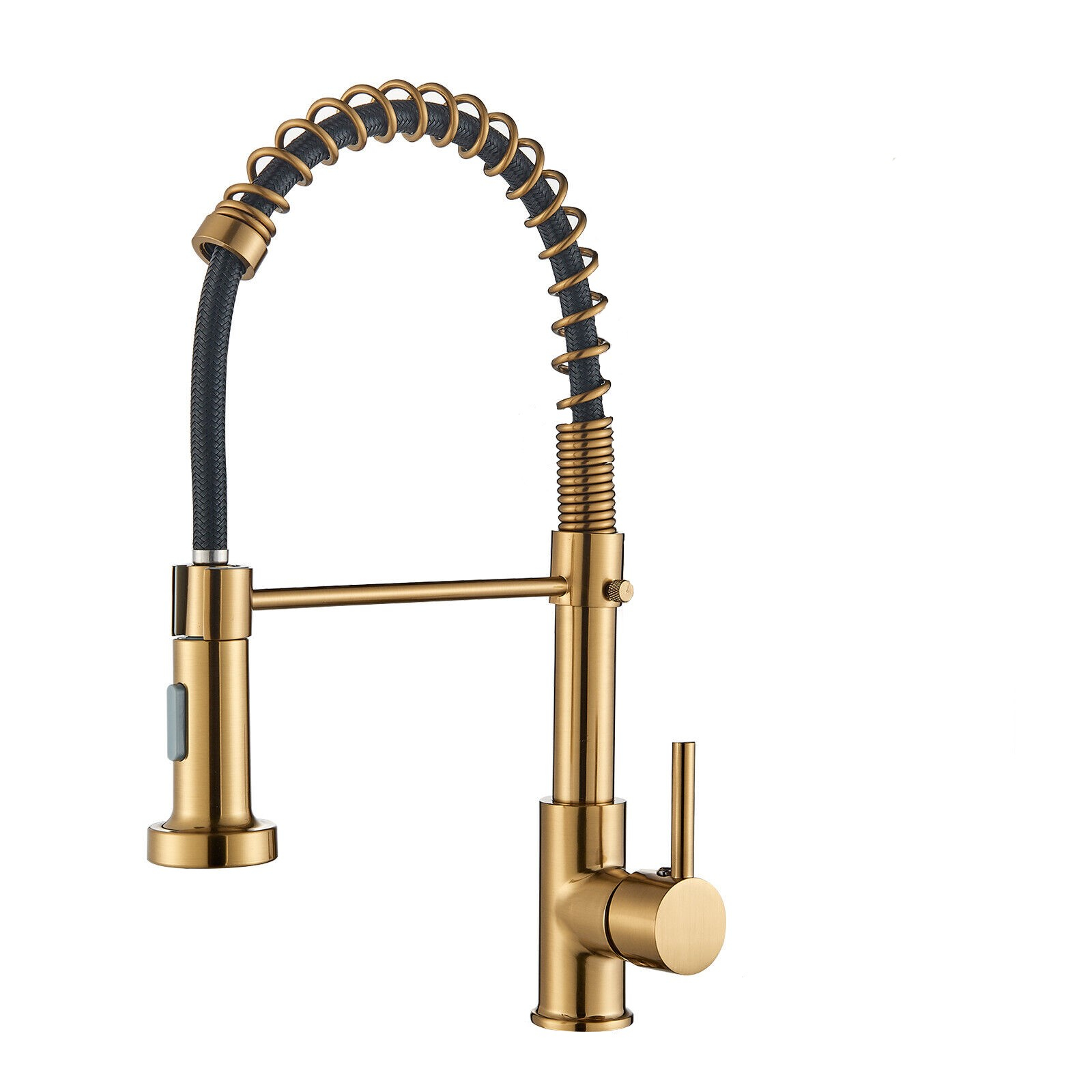 Baterie Chiuvetă Bucătărie auriu lucios– 44 cm, Duș Extractabil, 2 Moduri de Curgere, Finisaj Auriu Lucios