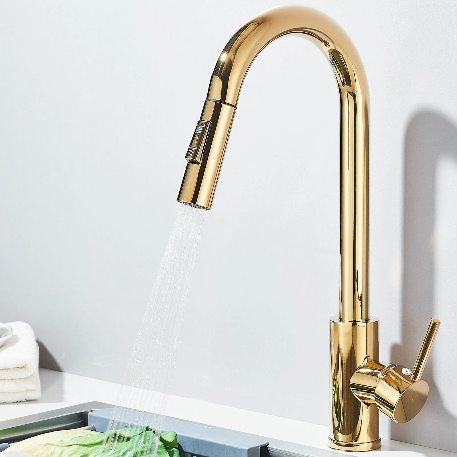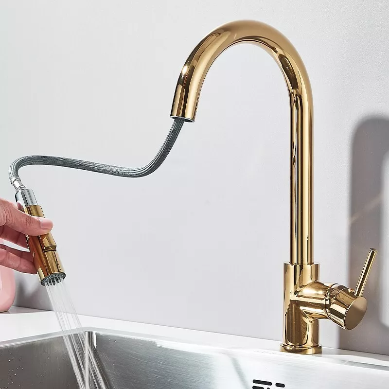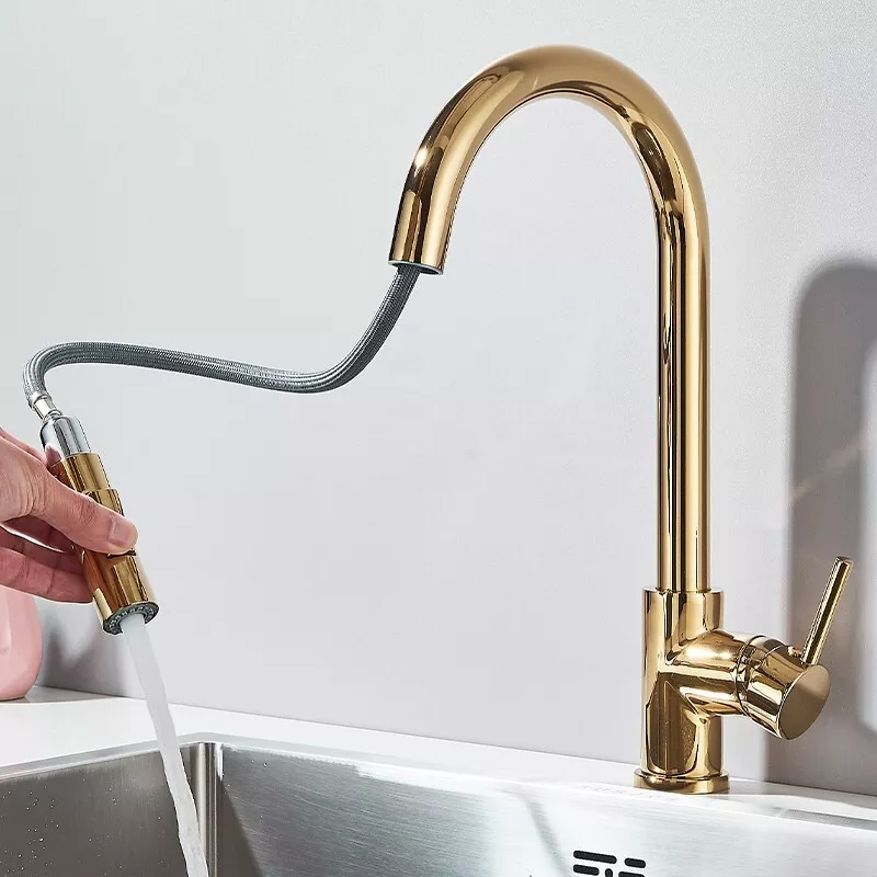Baterie Bucătărie cu Duș Extractabil auriu lucios – Design Modern și Funcționalitate Avansată