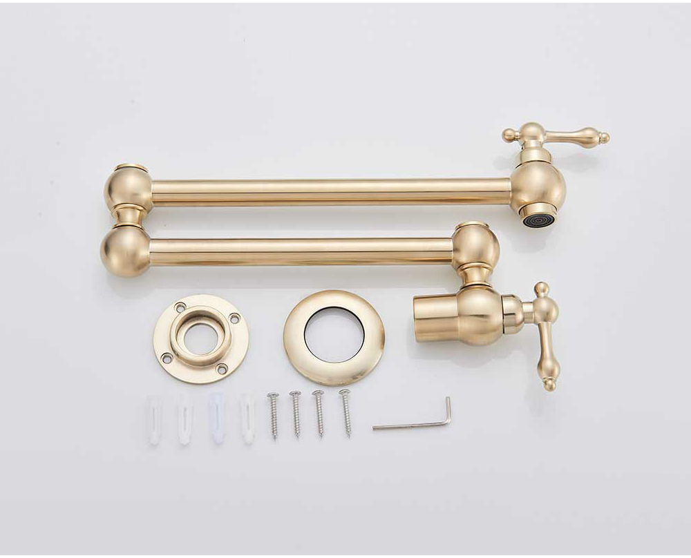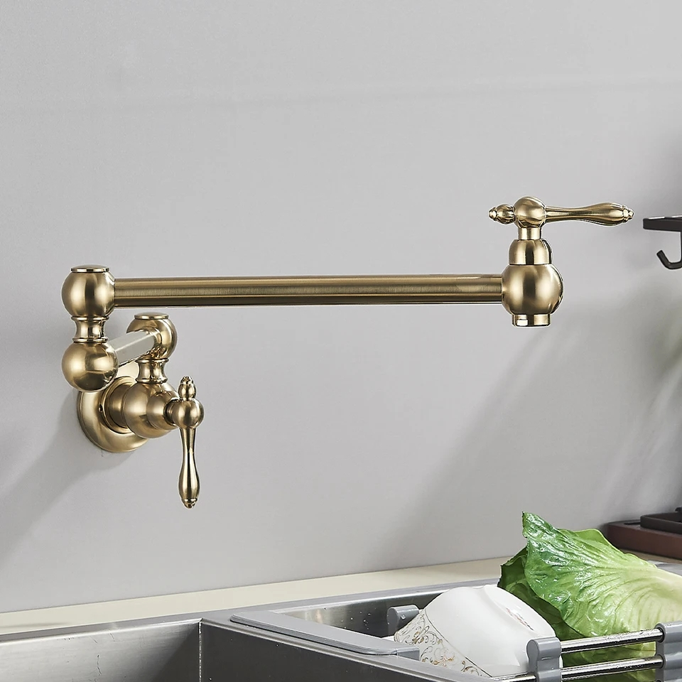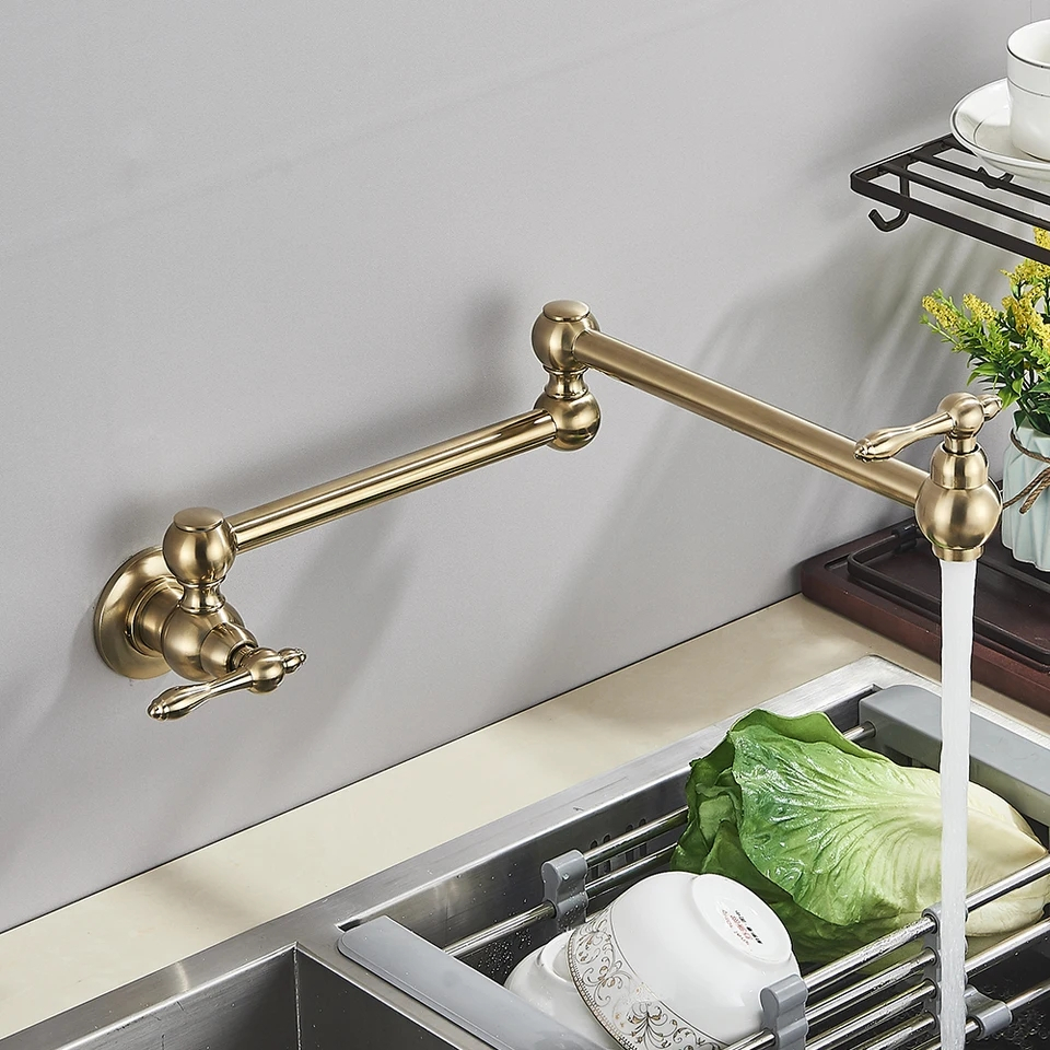 Baterie Chiuvetă Bucătărie – 58 cm, Finisaj Auriu Mat, Montaj pe Perete