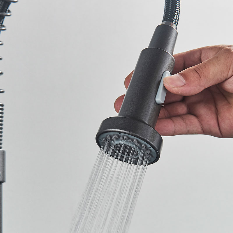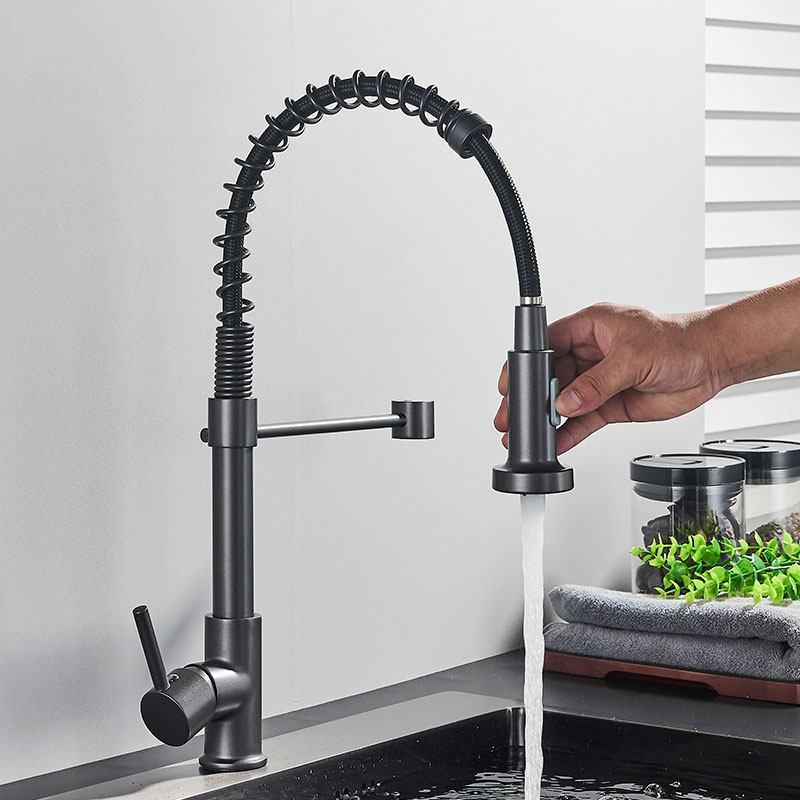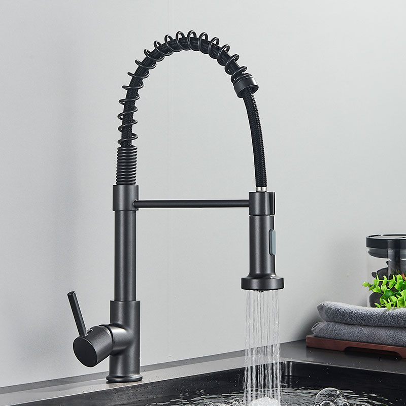 Baterie Chiuvetă Bucătărie – 44 cm, Duș Extractabil cu 2 Moduri de Curgere, Finisaj Gri Metalizat