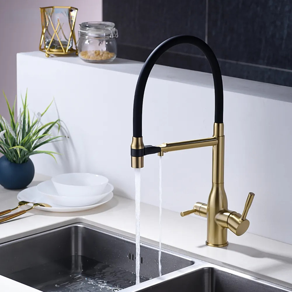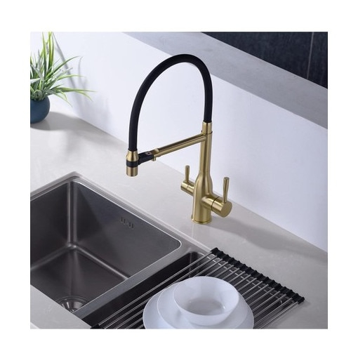 Adaugă un plus de stil și funcționalitate bucătăriei tale cu această baterie premium de 48 cm, ce îmbină un finisaj auriu mat elegant cu un design modern și practic.
