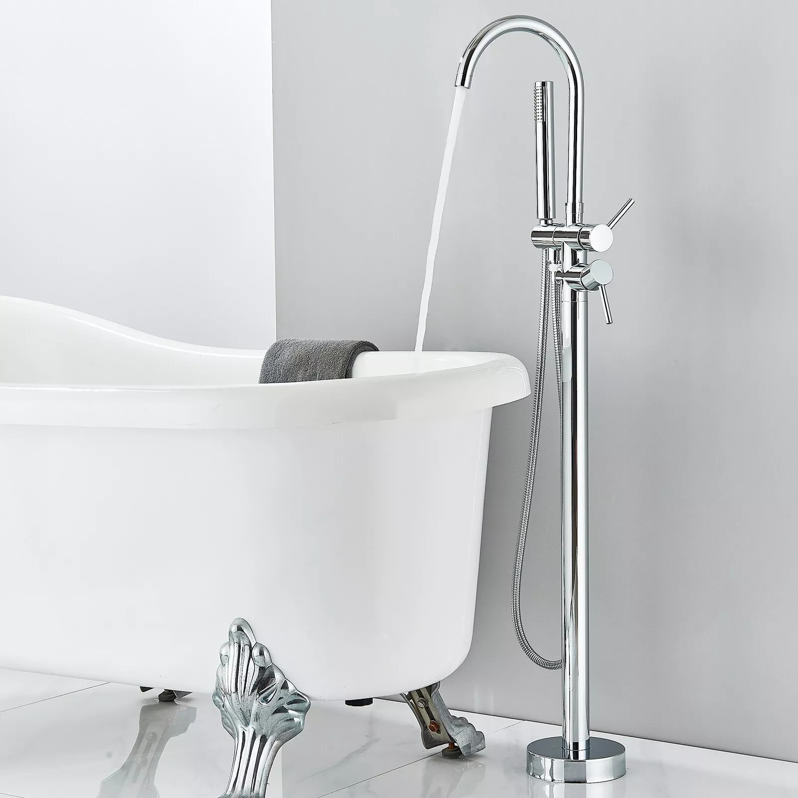 Transformă cada într-un element central al băii tale cu această baterie premium freestanding, cu montaj pe podea și cadru rotund. Finisajul crom lucios, curbele elegante și funcționalitatea modernă o fac alegerea perfectă pentru băile contemporane și sofisticate.
