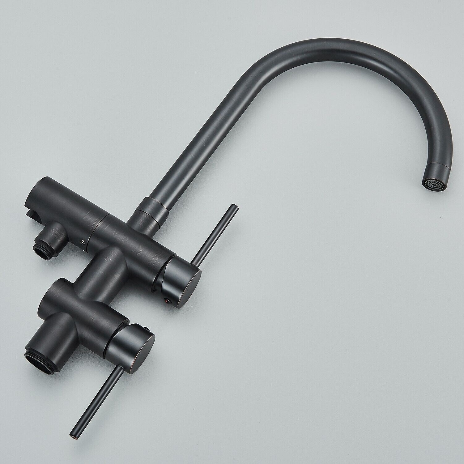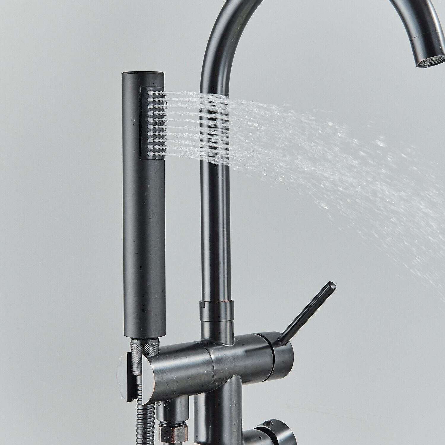 Caracteristici cheie: înălțime 117 cm, cadru rotund, finisaj negru/bronze, 2 funcții de curgere (cadă și duș de mână), pipă pivotantă 360°, construcție din alamă solidă, suprafață anti-amprente, montaj pe podea.