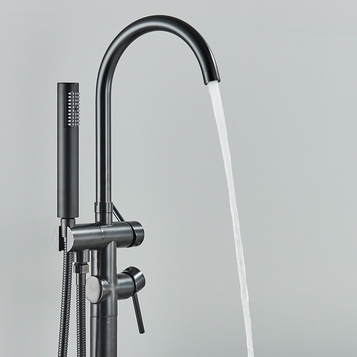 Această baterie pentru cadă, tip freestanding, cu montaj pe podea și finisaj negru/bronze, impresionează prin designul elegant și funcționalitatea practică. Cu o înălțime de 117 cm și un cadru rotund, devine un element central al băii, adăugând un plus de stil și rafinament.