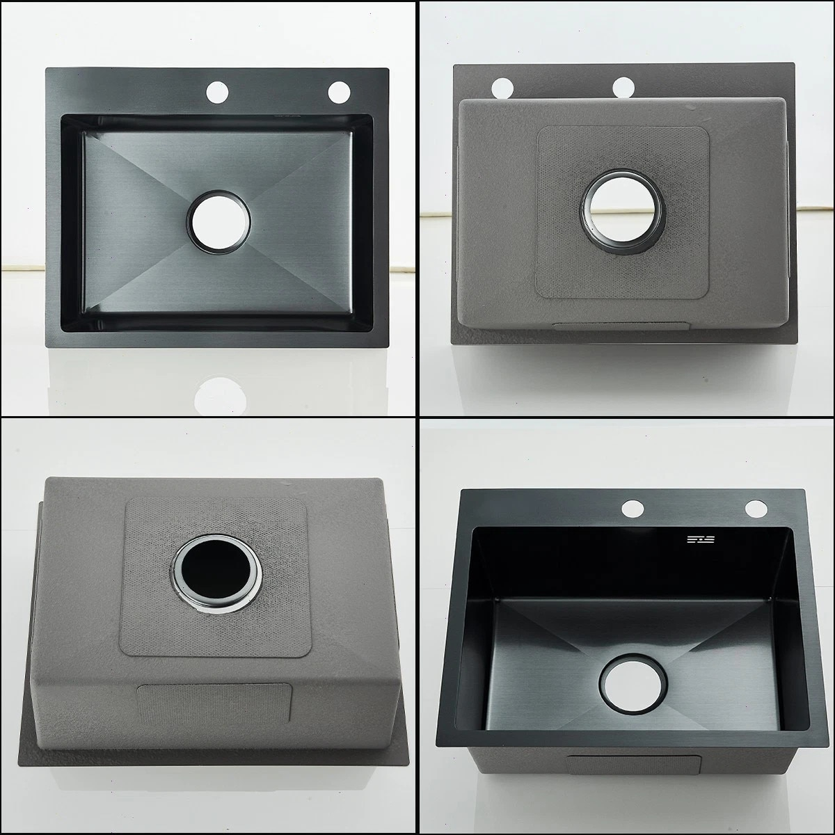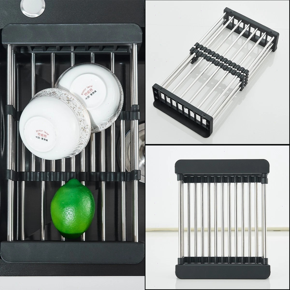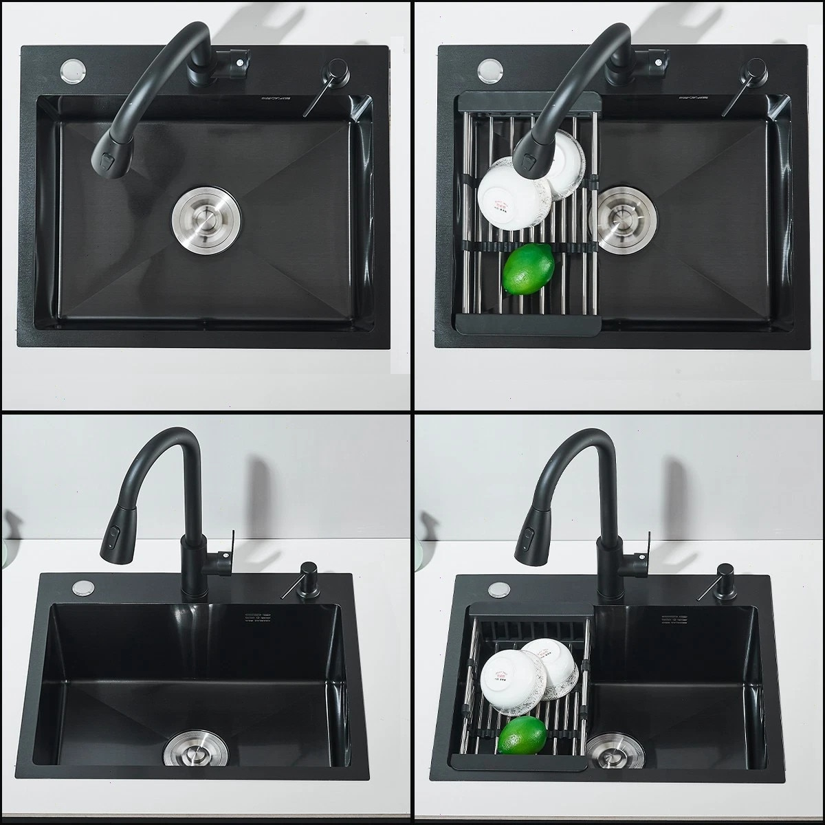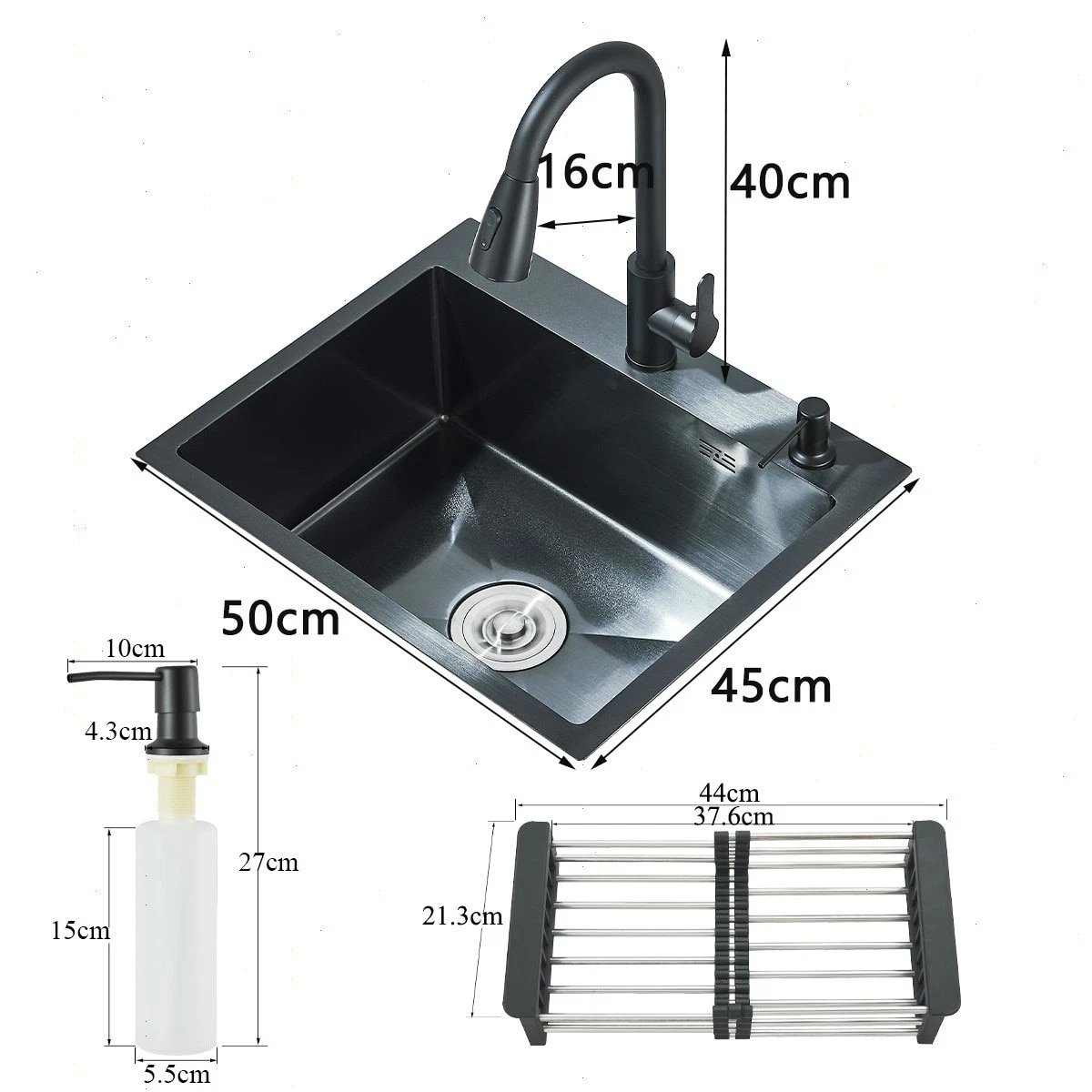Chiuveta Multifunctionala BisDesign® pentru Bucatarie, Toate Accesoriile Incluse, Dus Extractabil, Dispenser Sapun, Cos Organizator, Material Antiaderent, Finisaj Negru Mat, Dimensiune 50x45 cm