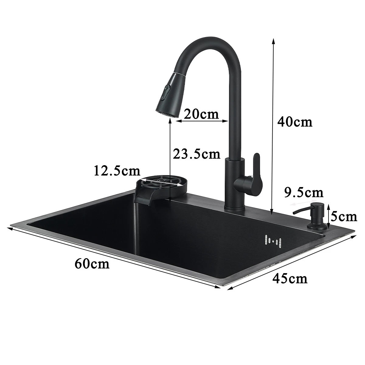 Chiuveta Multifunctionala BisDesign® pentru Bucatarie, Toate Accesoriile Incluse, Dus Extractabil, Spalator Pahare, Dispenser Sapun, Cos Organizator, Material Antiaderent, Finisaj Negru Mat, Dimensiun