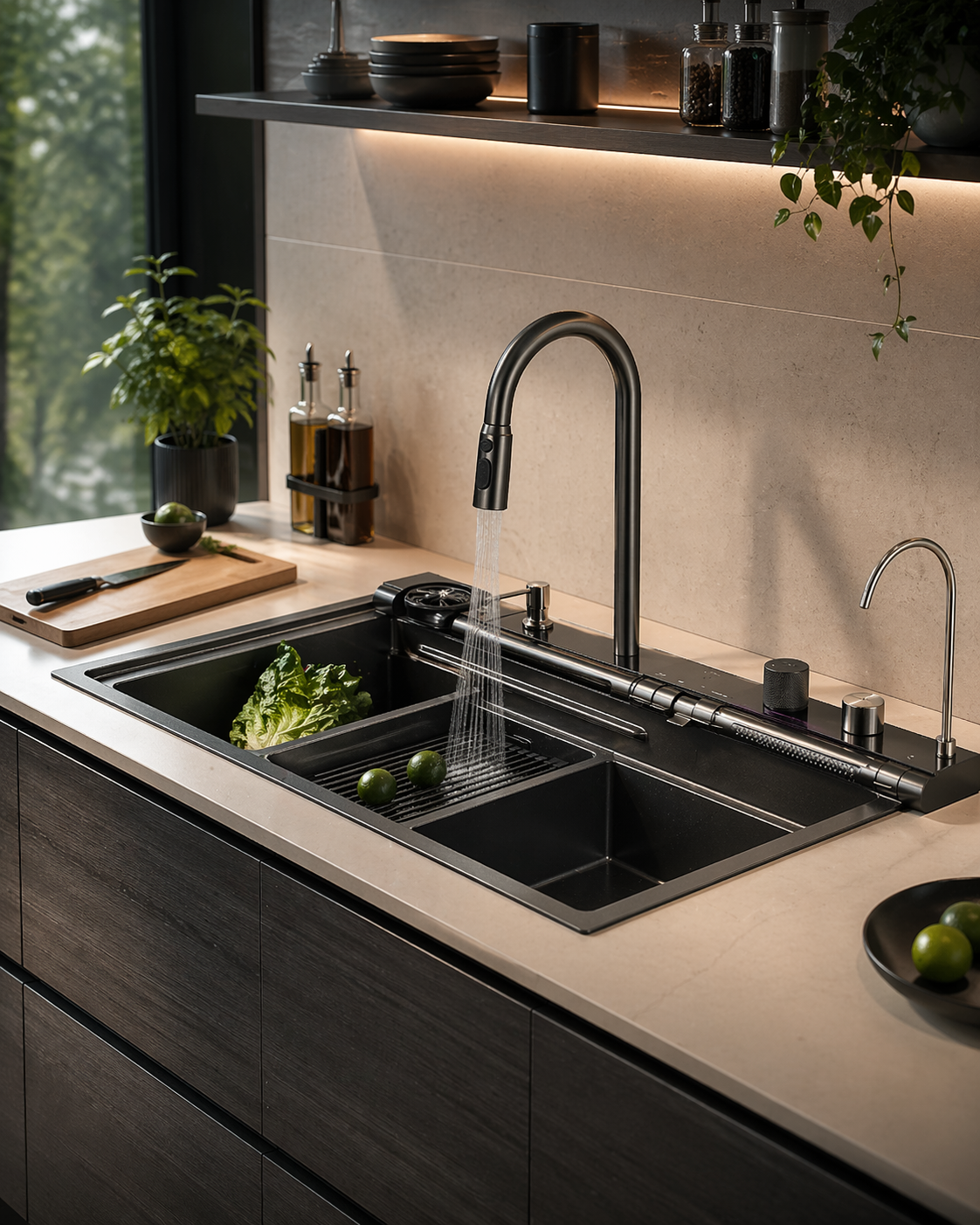 Această chiuvetă multifuncțională este alegerea perfectă pentru cei care doresc să transforme bucătăria într-un spațiu modern, elegant și extrem de eficient.