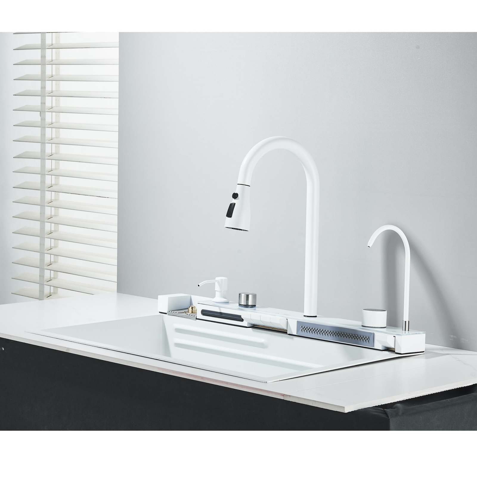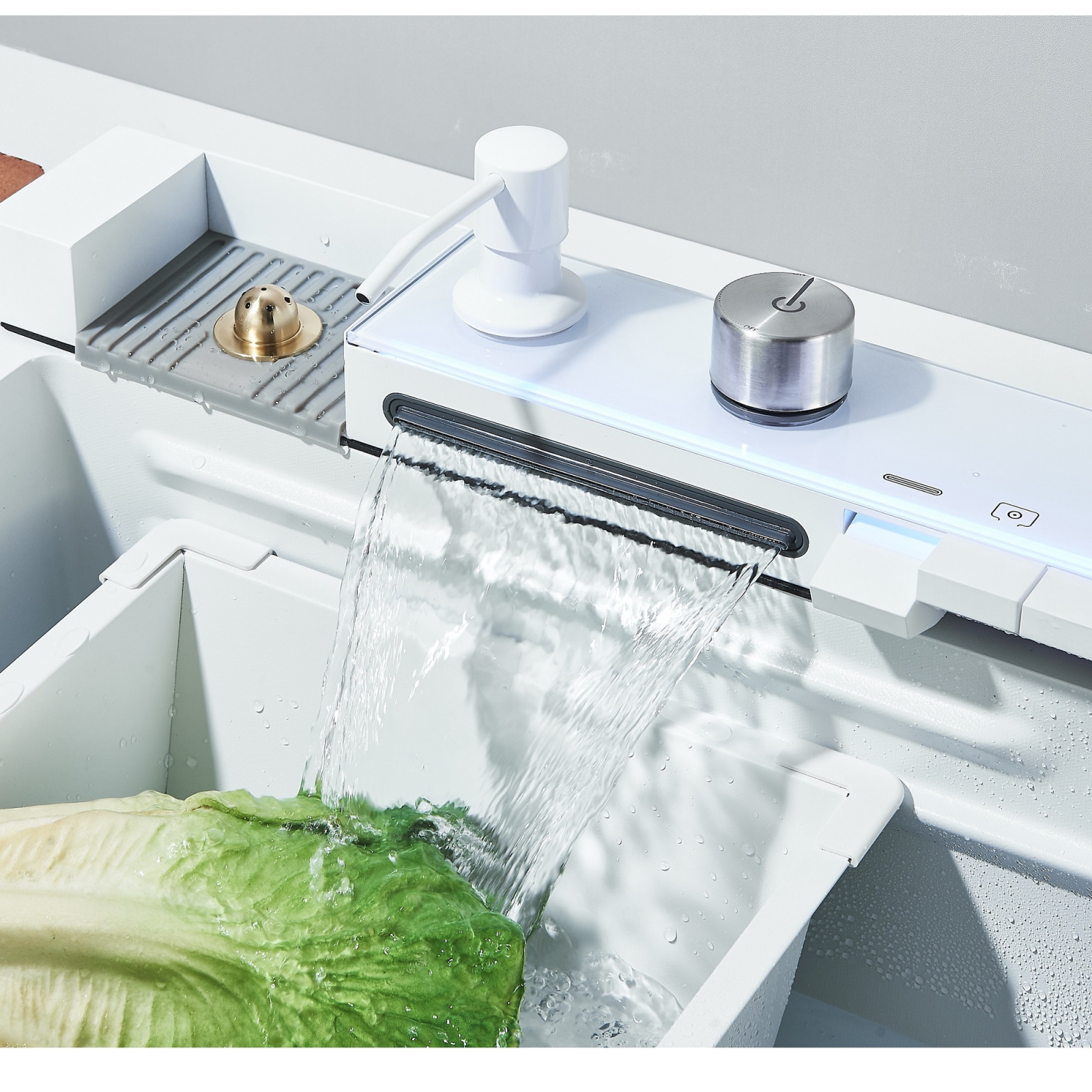 Dotată cu afișaj LCD cu bandă LED, chiuveta îți permite să monitorizezi temperatura apei în timp real. Funcția de duș extractabil adaugă flexibilitate, iar cele două cascade contribuie la o experiență elegantă și versatilă. Bateria pivotantă la 360° și posibilitatea de filtrare a apei completează funcționalitatea de top.