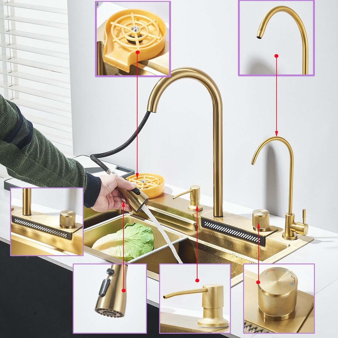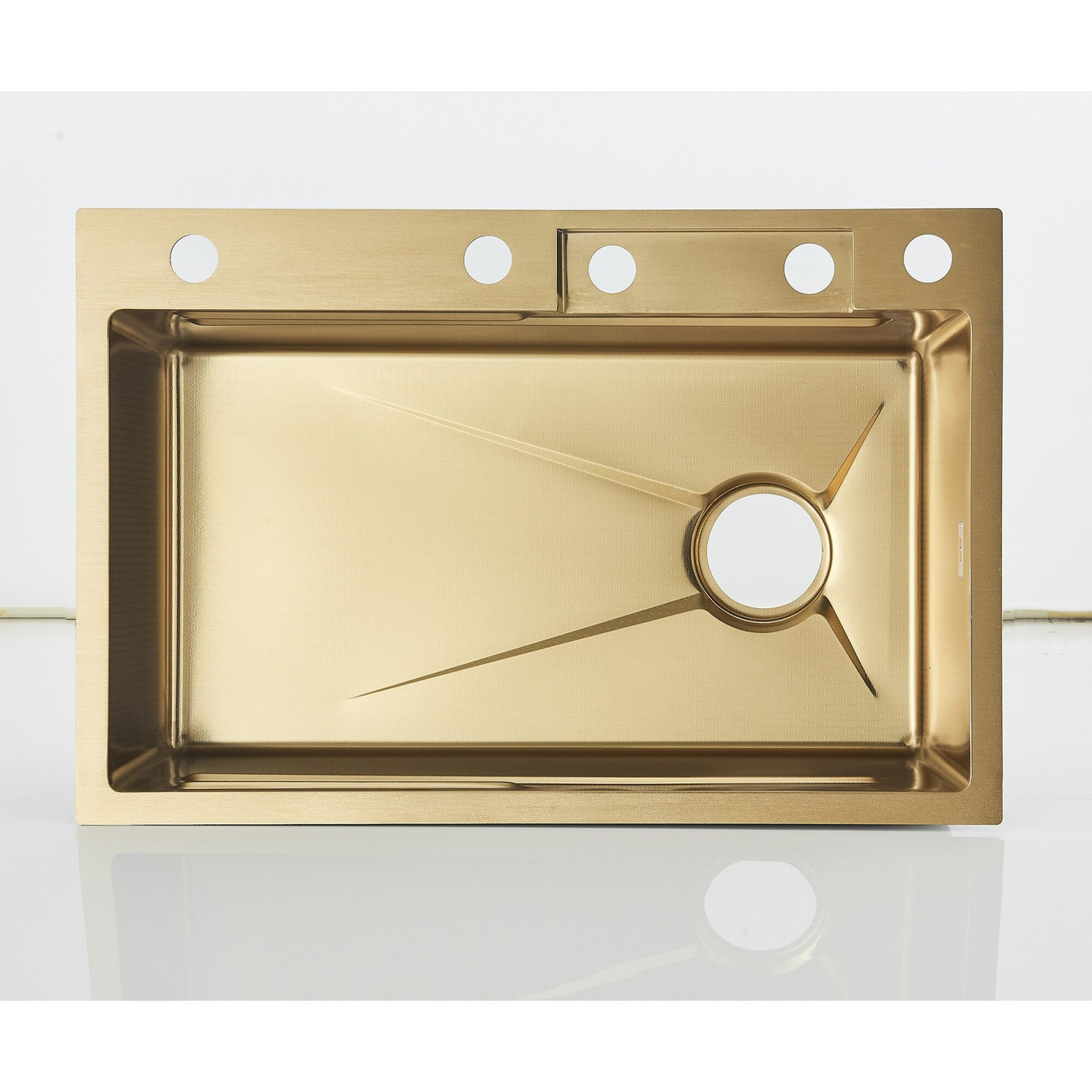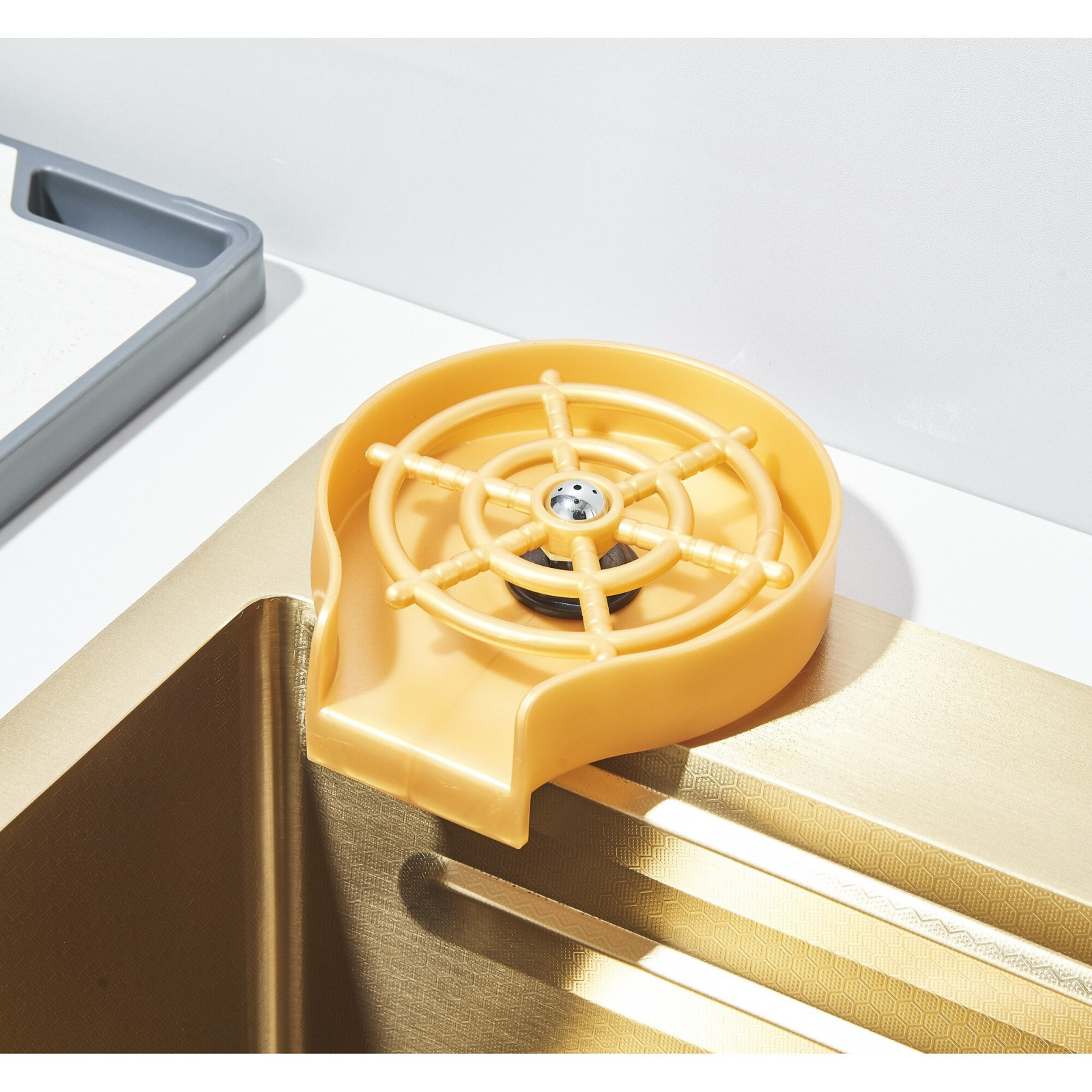 Aceasta chiuveta multifunctionala este dotata cu toate accesoriile necesare, inclusiv un dus extractabil si un tocator de abs plus otel, fiind ideala pentru orice bucatarie moderna. Cu un finisaj auriu mat si un design dreptunghiular, aceasta chiuveta ofera un volum generos, fiind fabricata din otel inoxidabil rezistent. Suprafata antiaderenta asigura intretinerea usoara si o durabilitate crescuta, perfecta pentru utilizarea zilnica.