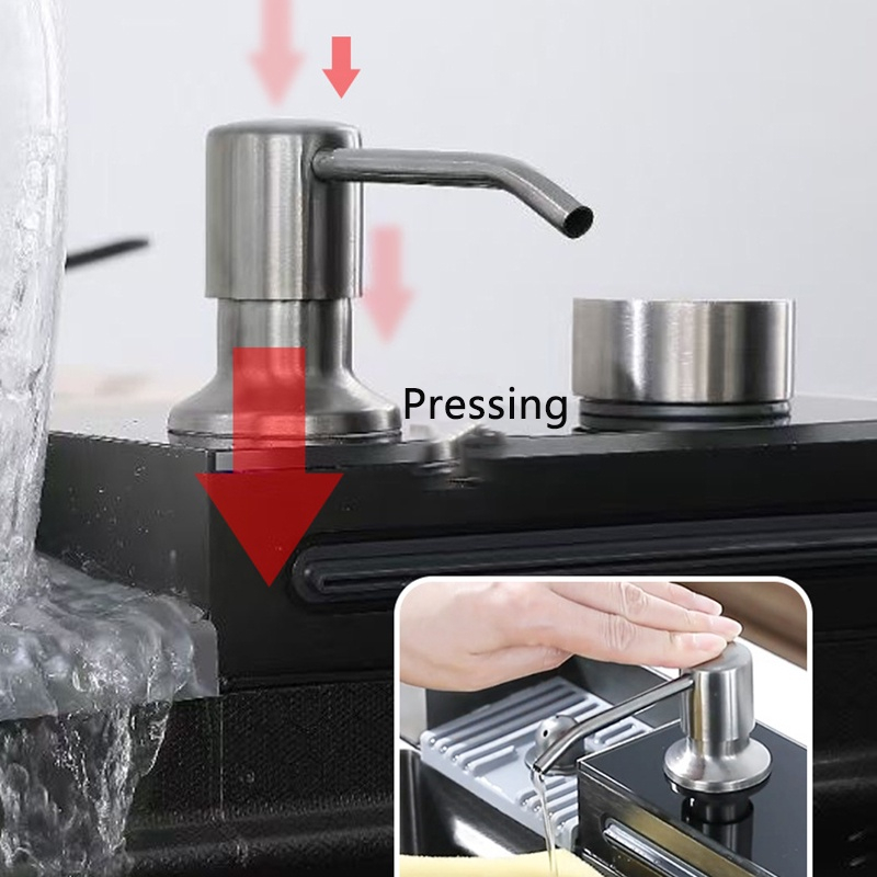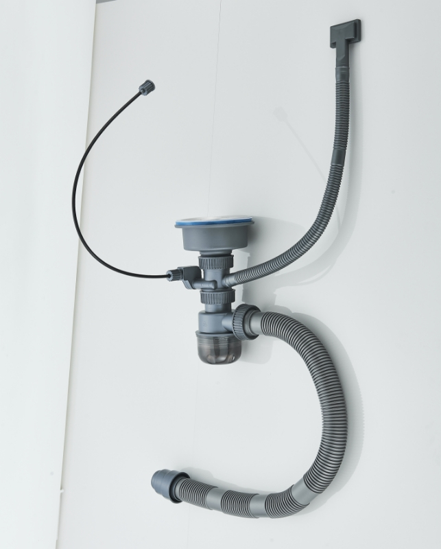 Set complet de accesorii inclus: tocător ABS, tăvițe glisante, dispenser săpun, spălător pahare, kit scurgere