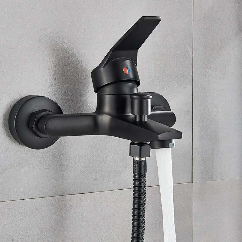 Elegantă și modernă, realizată din alamă solidă, rezistentă la coroziune. Oferă 2 funcții de curgere (pipa cadă și duș de mână) cu comutare rapidă prin deviator. Instalare pe perete, durabilă și ușor de întreținut – soluția perfectă pentru o baie contemporană.