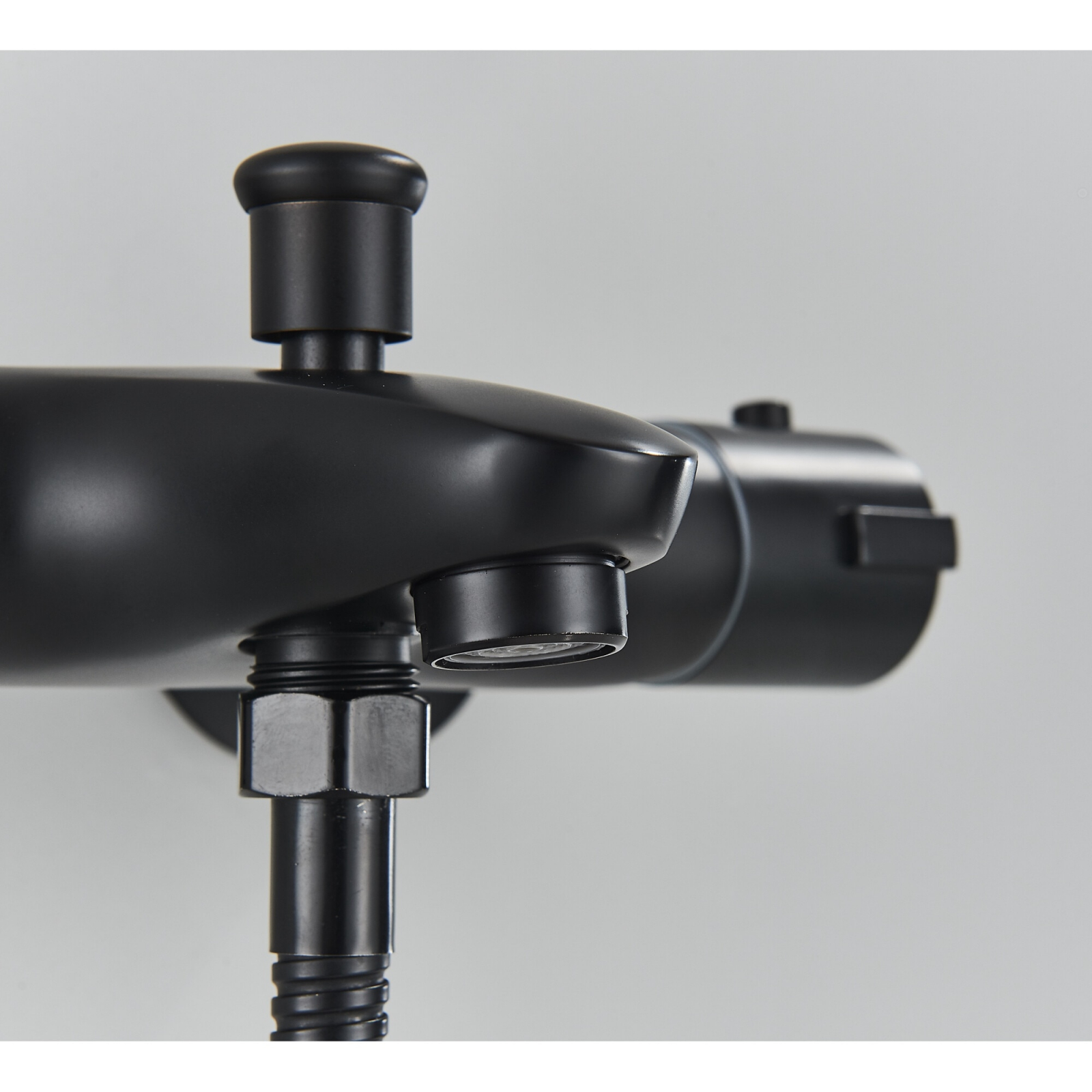 Caracteristici cheie: construcție din alamă solidă, pipă de mână din ABS rezistent, finisaj negru mat anti-amprente, funcție termostat pentru control optim al temperaturii, 2 funcții de curgere (duș și cadă), operare facilă prin robinet lateral.