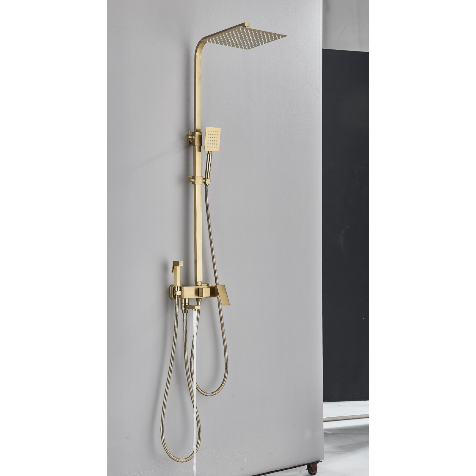 Această coloană de duș cu finisaj auriu mat îmbină perfect designul modern cu funcționalitatea practică, adăugând o notă de lux în orice baie contemporană. Reglabilă pe înălțime, oferă adaptabilitate maximă și transformă fiecare duș într-o experiență personalizată și confortabilă.