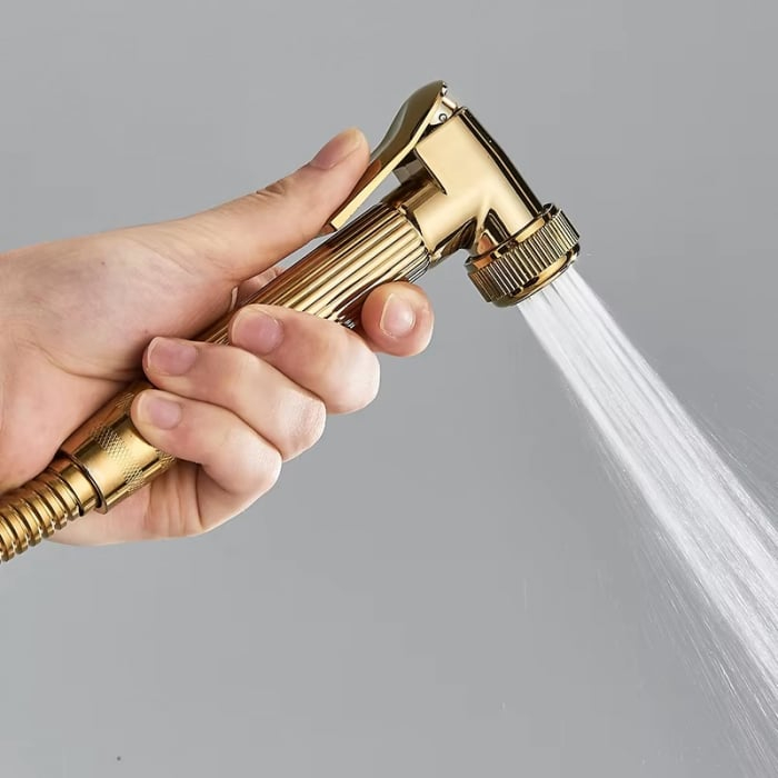 Caracteristici cheie: pălărie de duș tip ploaie 25 cm, finisaj elegant auriu lucios/negru mat, patru funcții de curgere, robinet pivotant 180°, înălțime reglabilă 73–116 cm, construcție din alamă solidă cu tratament anti-amprente.
