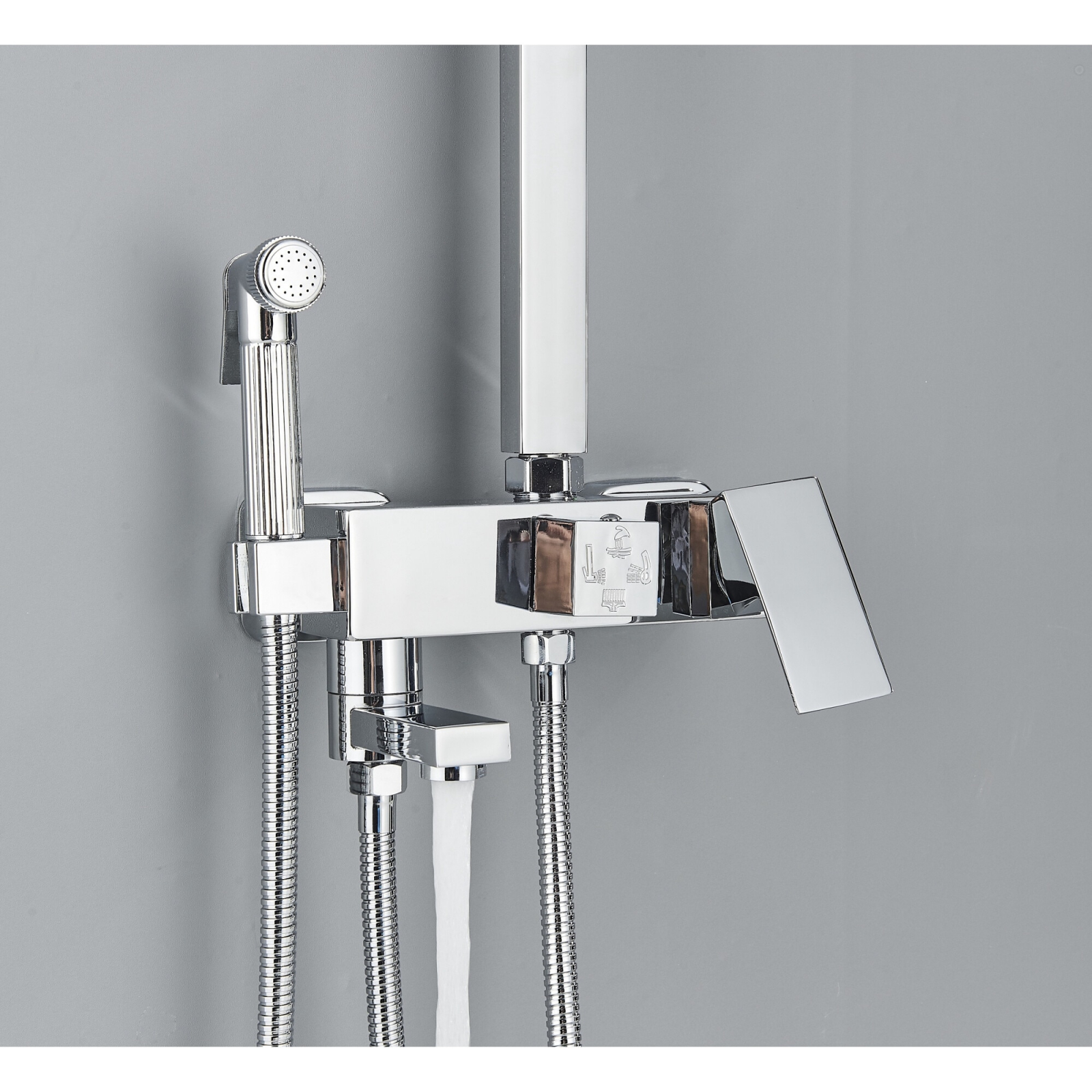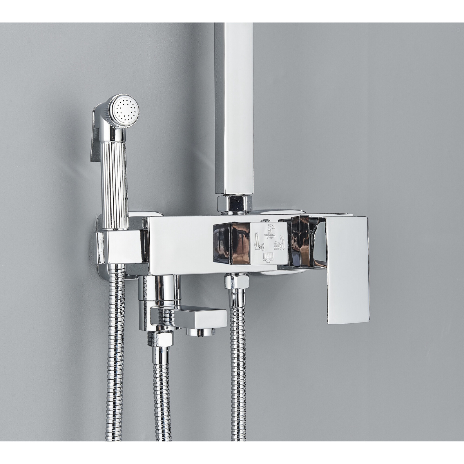 Coloana dispune de 4 funcții de curgere – para fixă tip ploaie, duș de mână, duș igienic și robinet pentru cadă (pivotant la 180°). Selectarea se face rapid prin robinetul superior, oferind ușurință și adaptabilitate. În plus, coloana este reglabilă pe înălțime între 73 și 116 cm, pentru a se potrivi perfect oricărui utilizator.