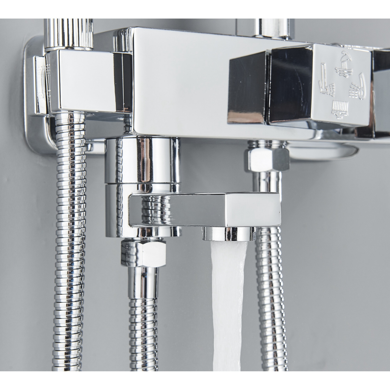 Această coloană de duș baie, finisaj crom lucios, aduce un plus de funcționalitate și eleganță în orice spațiu sanitar. Cu un design modern și pălărie de duș de 30 cm tip ploaie, oferă o experiență relaxantă și uniformă, transformând fiecare duș într-un moment de răsfăț.