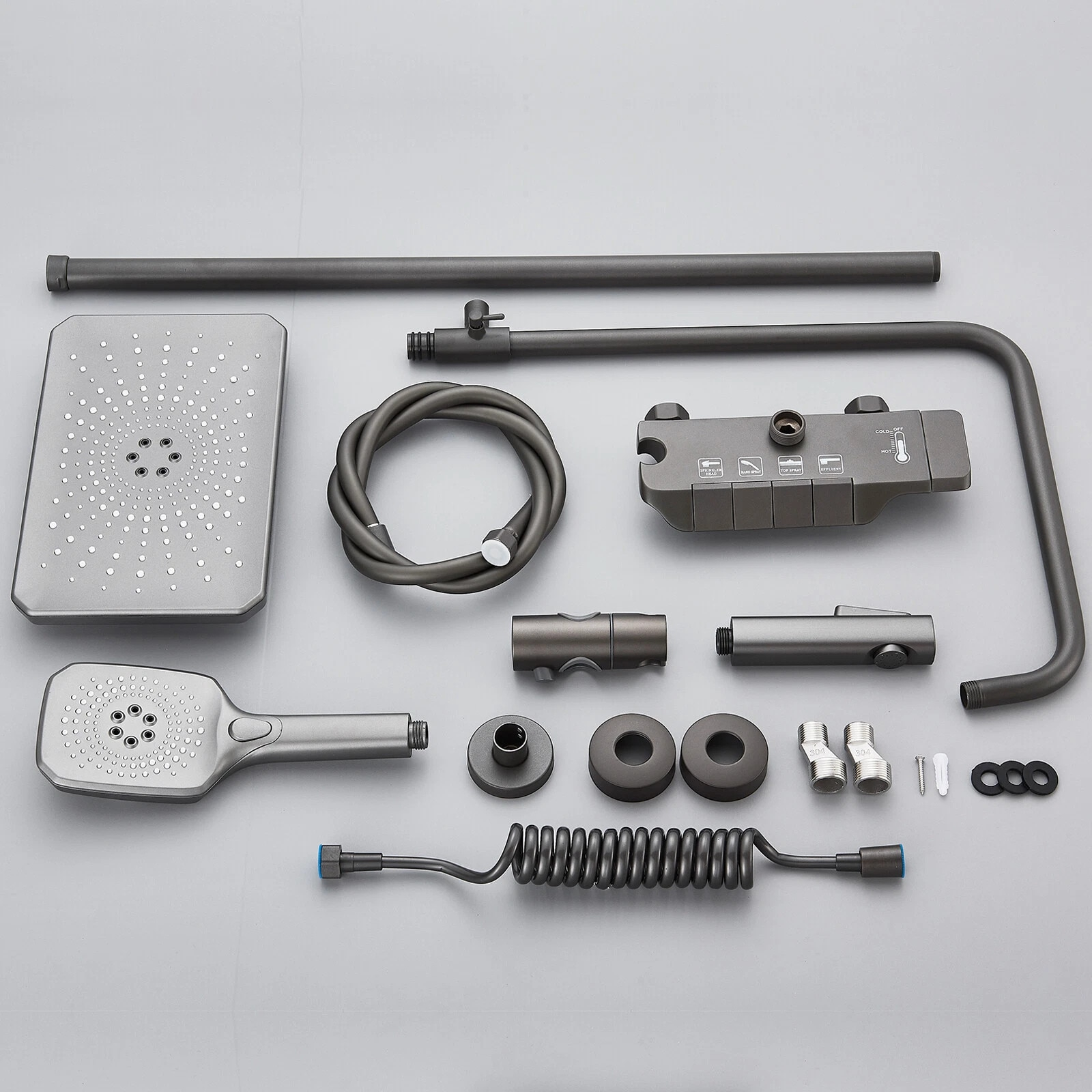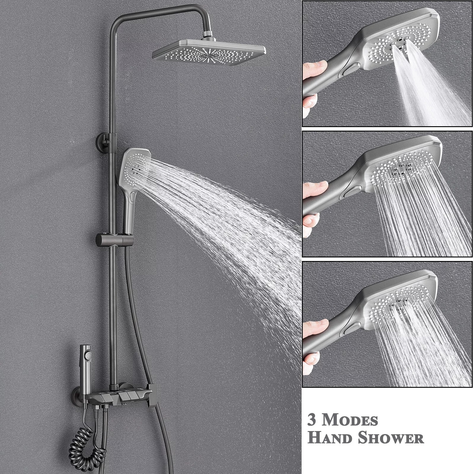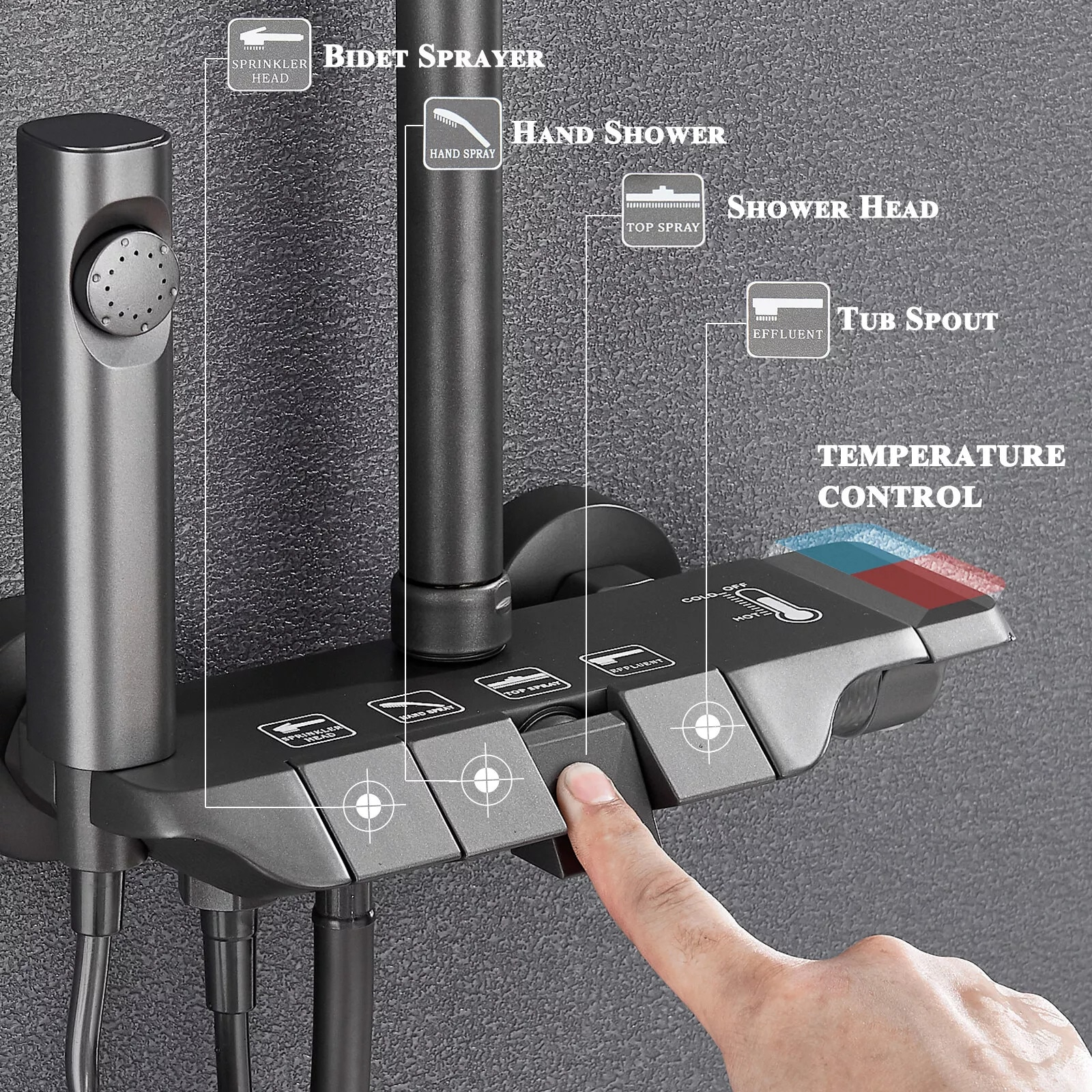 Coloană de Duș – Design Modern cu Butoane Piano, Finisaj Gri Antracit, Palărie 28 cm și 4 Funcții