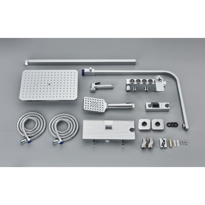 Caracteristici cheie: termostat pentru controlul precis al temperaturii apei, pălărie de duș de 30 cm cu efect ploaie, construcție din alamă solidă și ABS de calitate, finisaj crom lucios rezistent la amprente, patru funcții de curgere, reglaj pe înălțime pentru flexibilitate maximă.