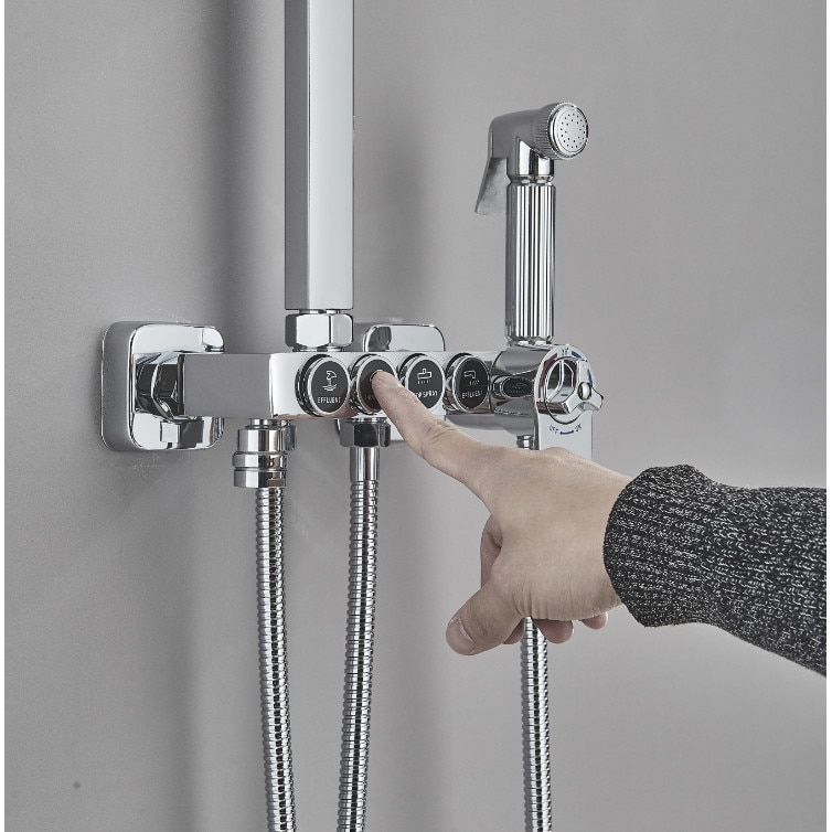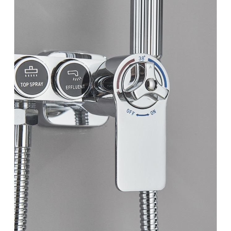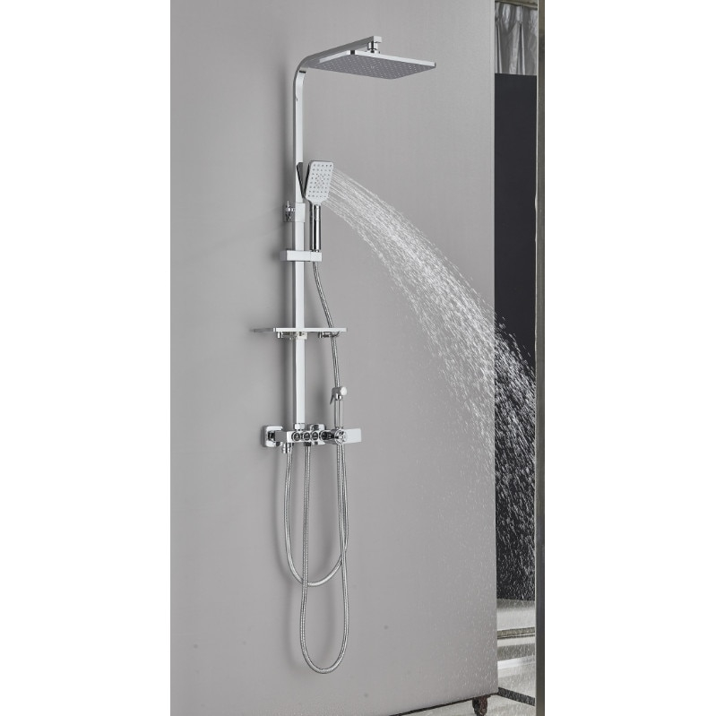 Această coloană de duș cu termostat și finisaj crom lucios este soluția ideală pentru o baie modernă și confortabilă, combinând un design elegant cu funcționalitate avansată. Dotată cu pălărie de duș de 30 cm cu efect ploaie, oferă o experiență relaxantă și plăcută, transformând fiecare duș într-un moment de răsfăț.