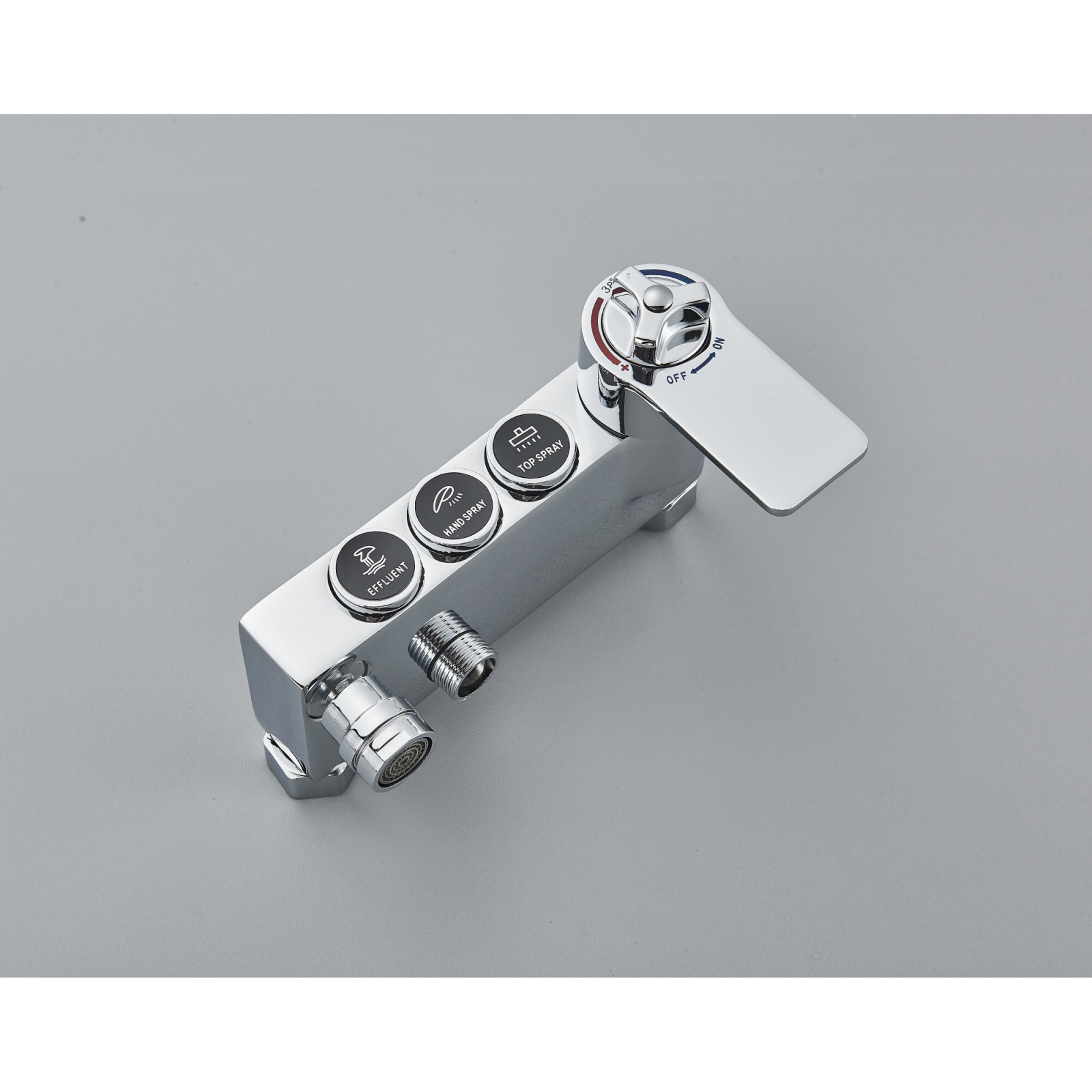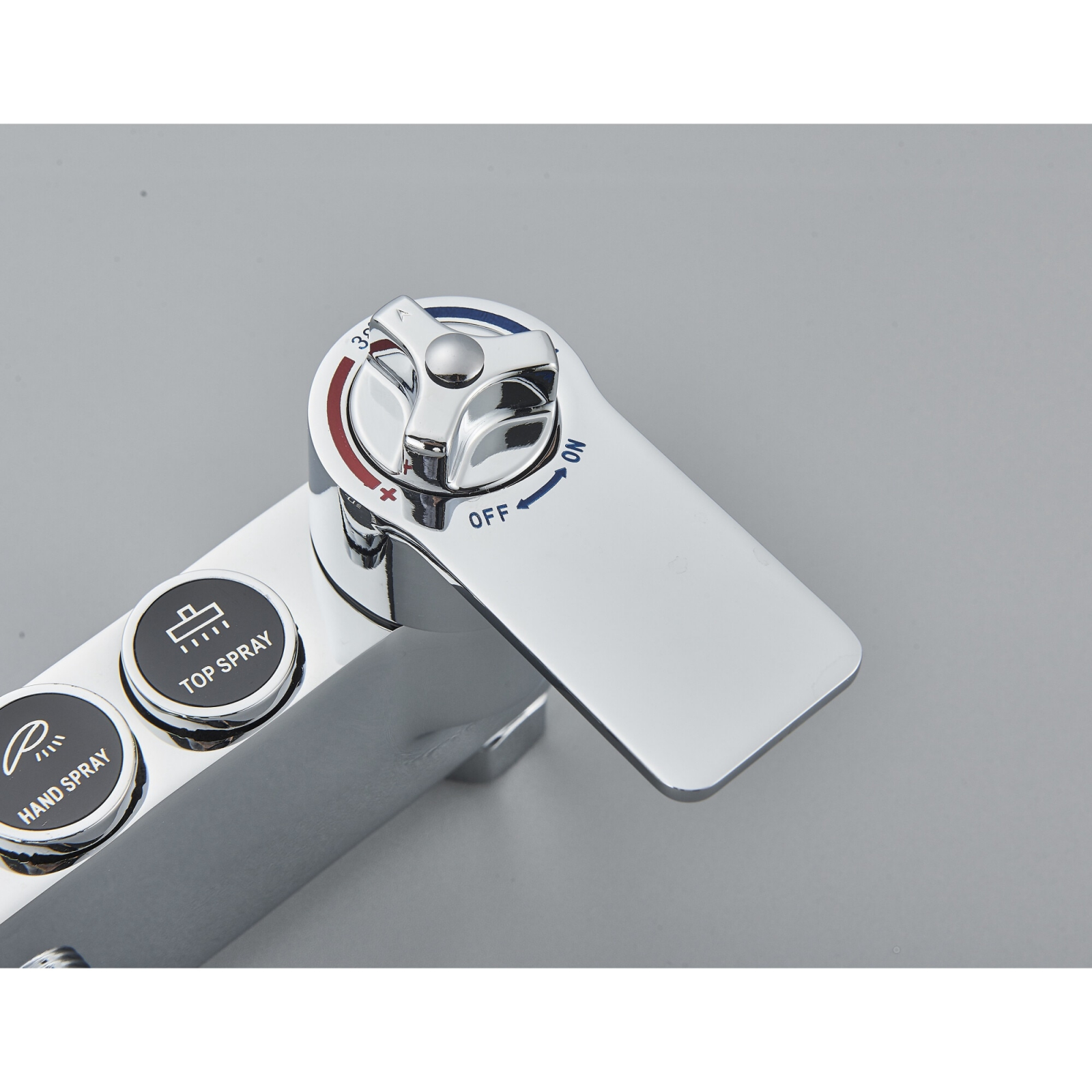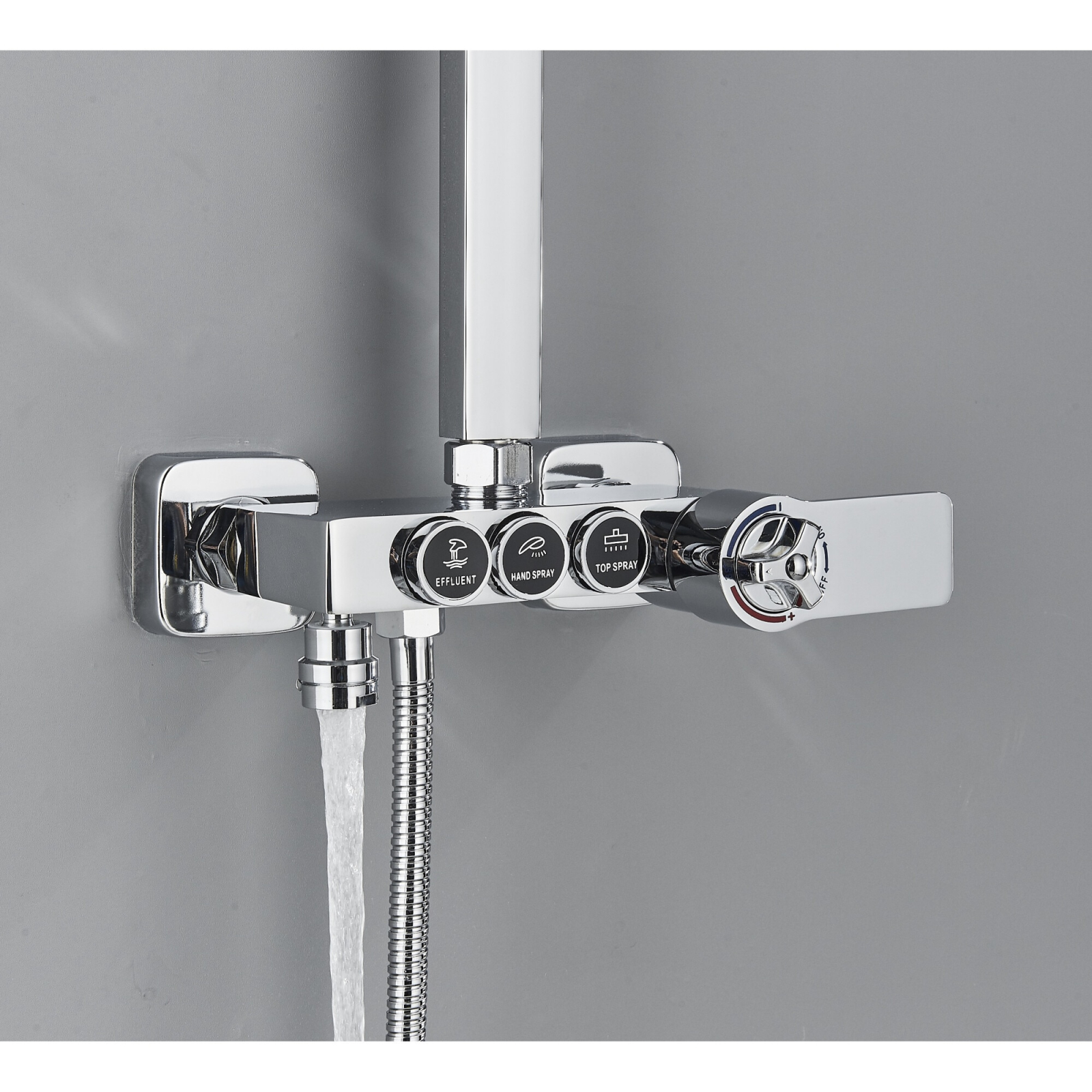 Sistemul este echipat cu termostat integrat, menținând temperatura apei constantă pentru un confort sporit și protecție împotriva variațiilor bruște. În plus, coloana este prevăzută cu 3 funcții de curgere: para de duș fixă, para de mână și duș igienic, selectabile ușor prin robinetul amplasat în partea inferioară.