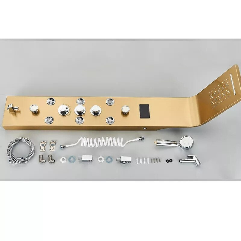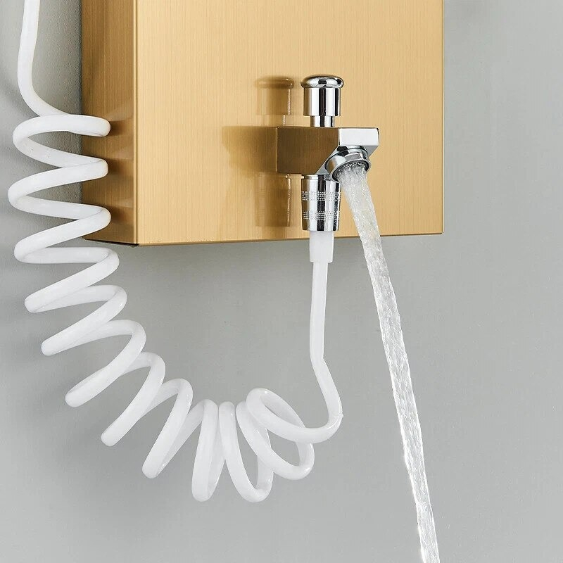 Această coloană de duș impresionează prin finisajul auriu periat, ce adaugă un plus de lux și căldură vizuală spațiului tău. Cu o înălțime generoasă de 128 cm și o construcție solidă din oțel inoxidabil, produsul este gândit să reziste în timp, păstrându-și frumusețea și performanța chiar și în condiții de utilizare zilnică intensă.