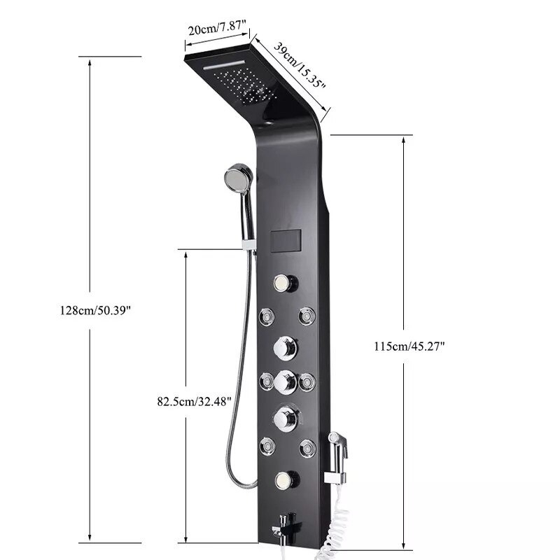 Coloana de duș impresionează prin finisajul negru metalizat premium, ce adaugă un plus de stil și modernitate oricărui decor. Cu o înălțime de 128 cm și o construcție robustă din oțel inoxidabil, este concepută pentru a rezista în timp, menținându-și performanța și eleganța chiar și în condiții de utilizare zilnică intensă.