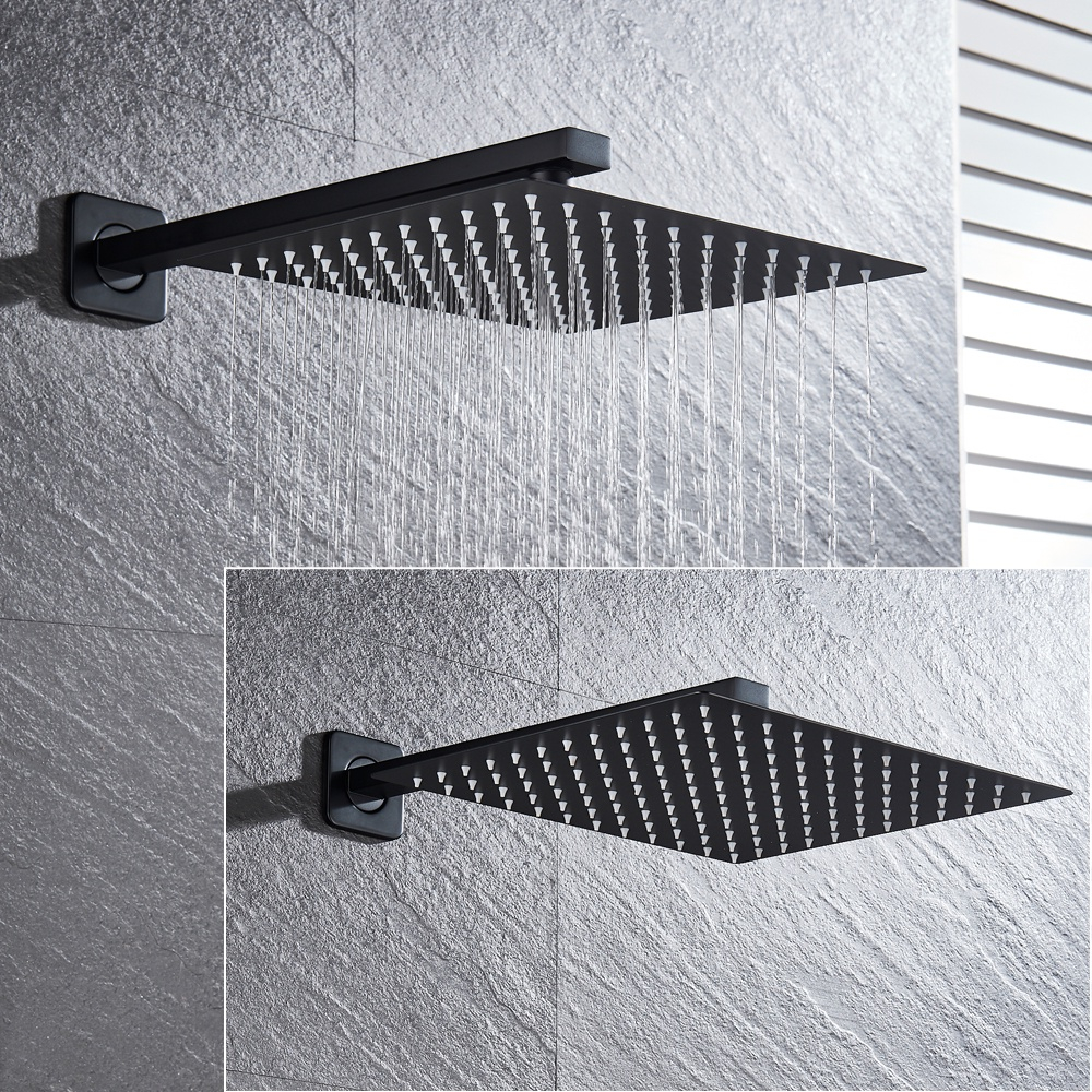 Sistem de Dus Incastrabil, Ecran LCD, Functie Cascada, Finisaj Negru Mat, Para Dus Perete 40 cm