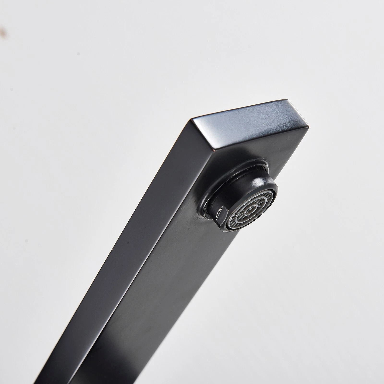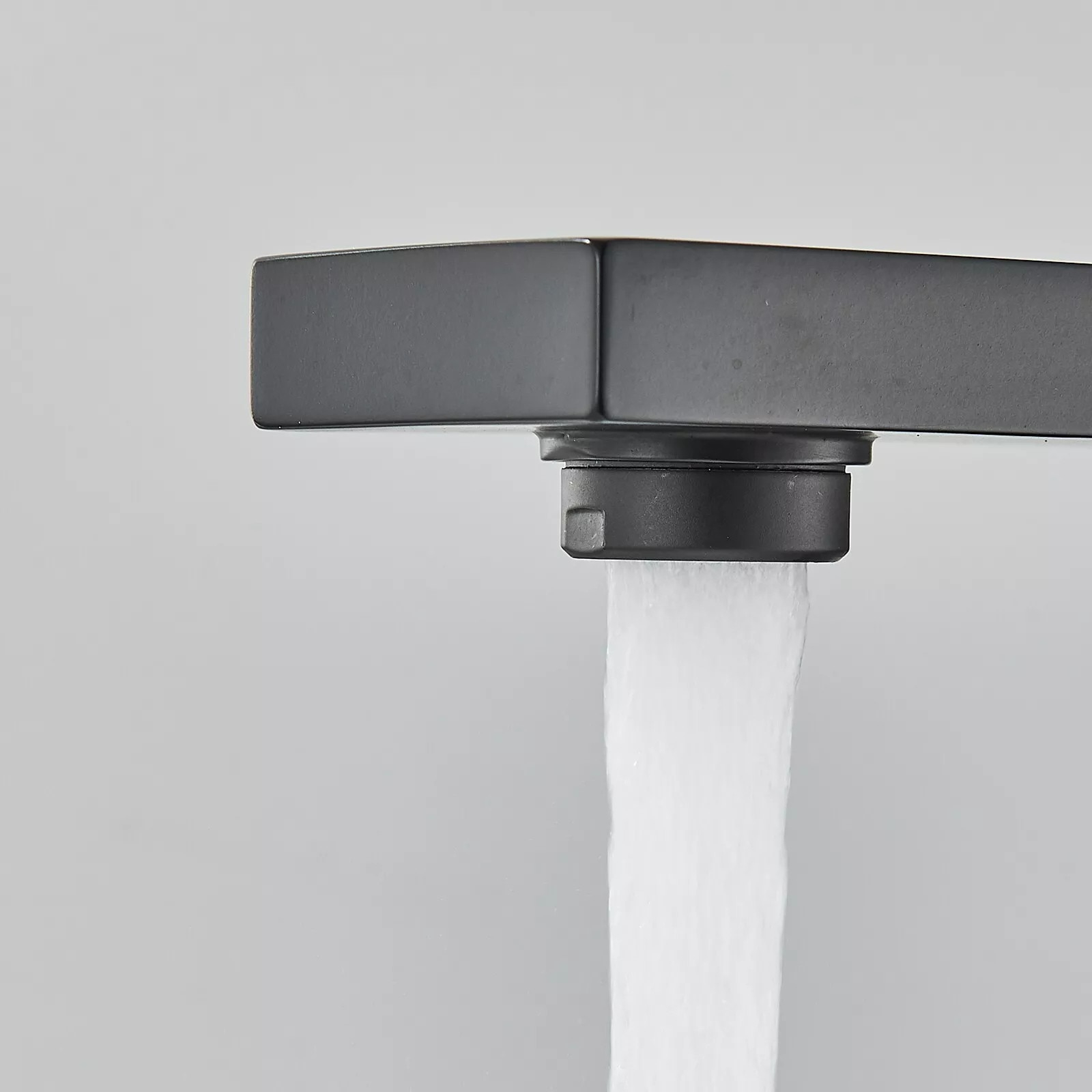 Caracteristici cheie: montaj ușor pe podea, pipă pivotantă cu debit ajustabil, finisaj negru mat pentru un aspect elegant, cartuș ceramic pentru durabilitate și precizie, design modern ce adaugă rafinament oricărui decor.