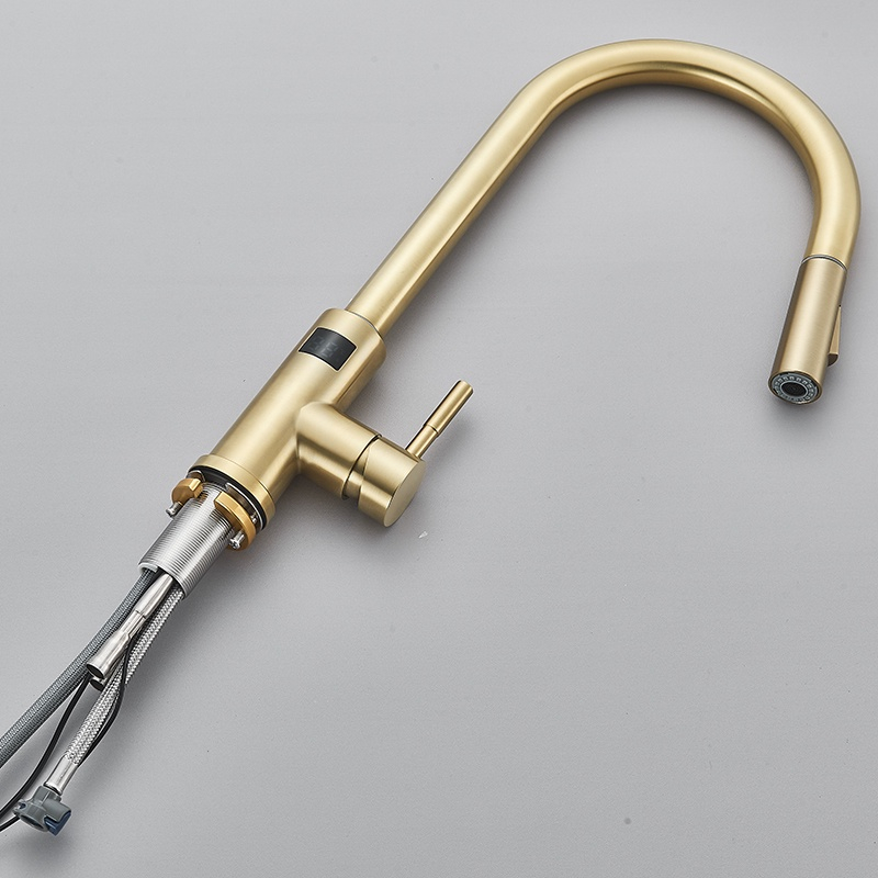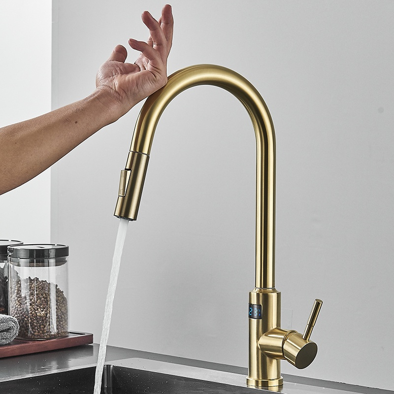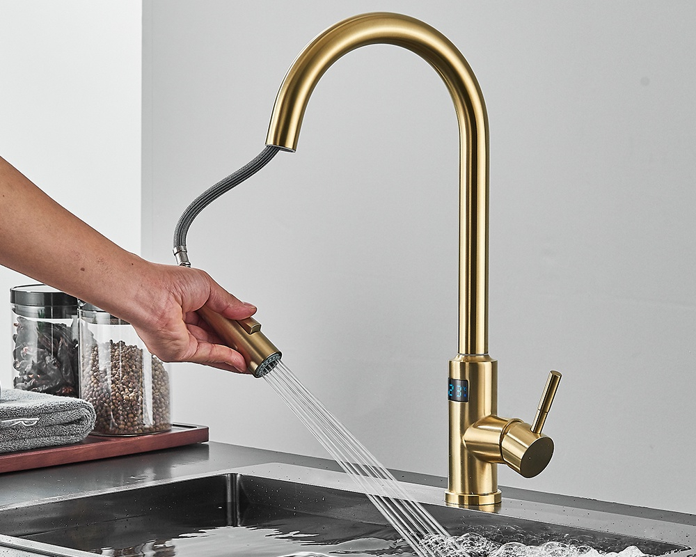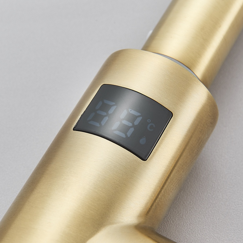 Baterie Chiuvetă Bucătărie – Finisaj Auriu Mat, 44 cm, Funcție Touch și Senzor de Temperatură