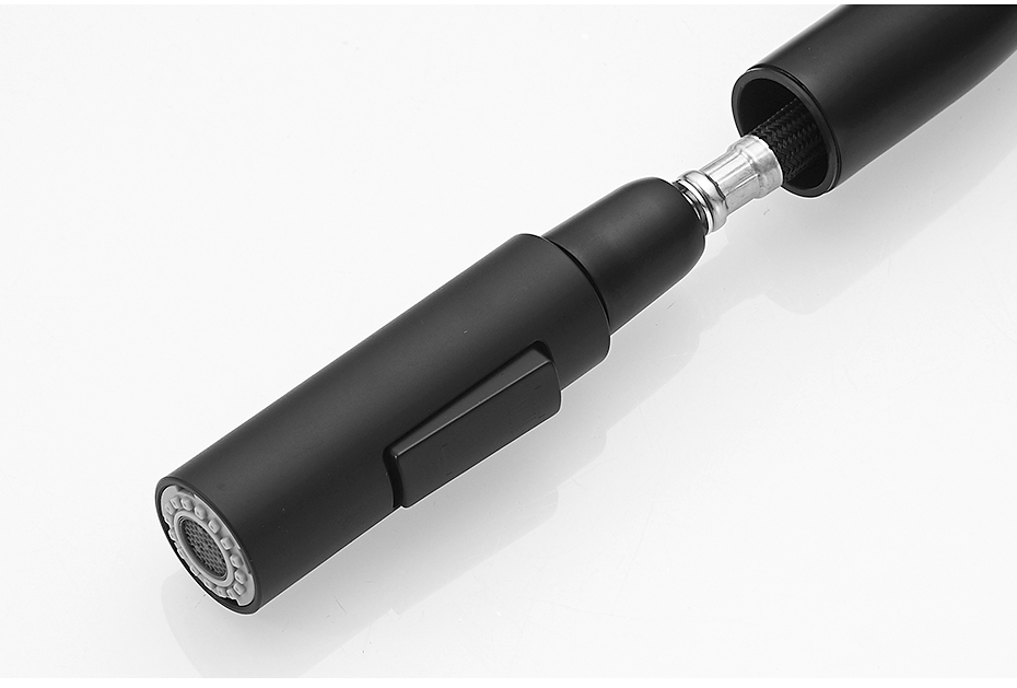 Bateria este echipată cu un duș extractabil flexibil, ideal pentru spălarea vaselor voluminoase și pentru clătirea rapidă a suprafețelor. Cele două funcții de curgere – jet normal și duș – se adaptează ușor nevoilor din bucătărie.