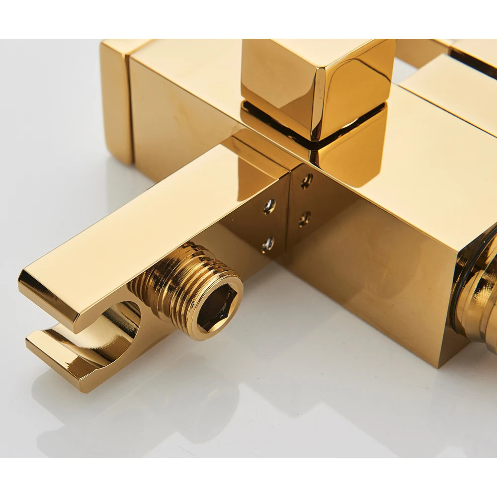 Toate componentele sunt realizate din alamă solidă, oferind rezistență ridicată la coroziune și la uzura zilnică. Finisajul lucios este obținut prin galvanizare în mai multe straturi, asigurând o suprafață netedă, strălucitoare, rezistentă la amprente și foarte durabilă.