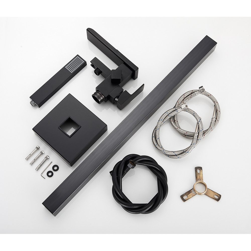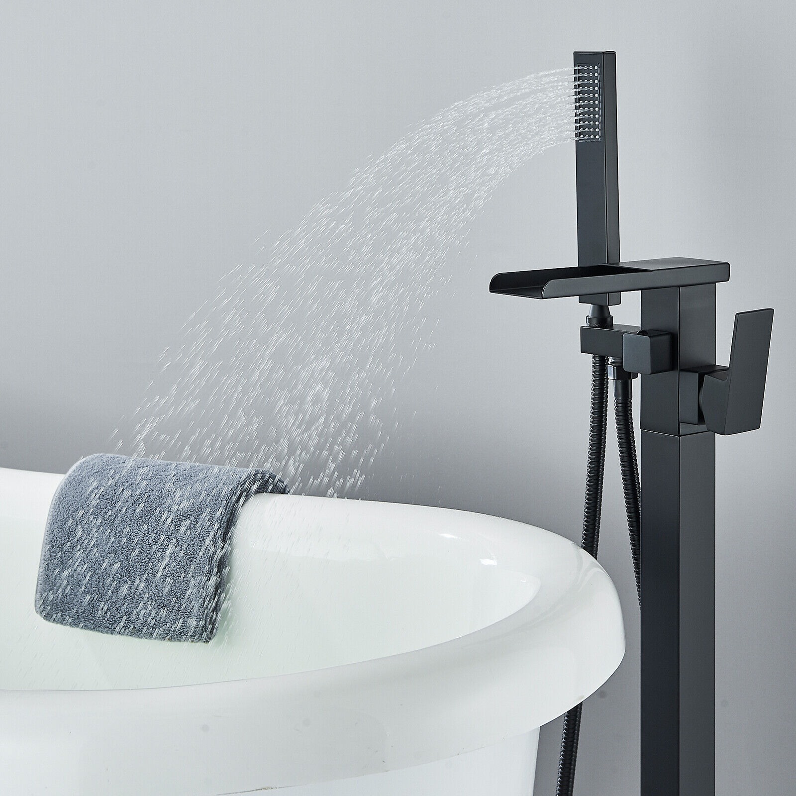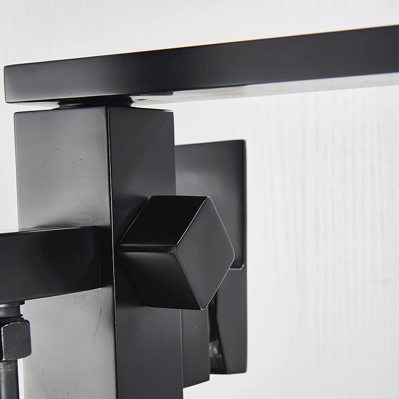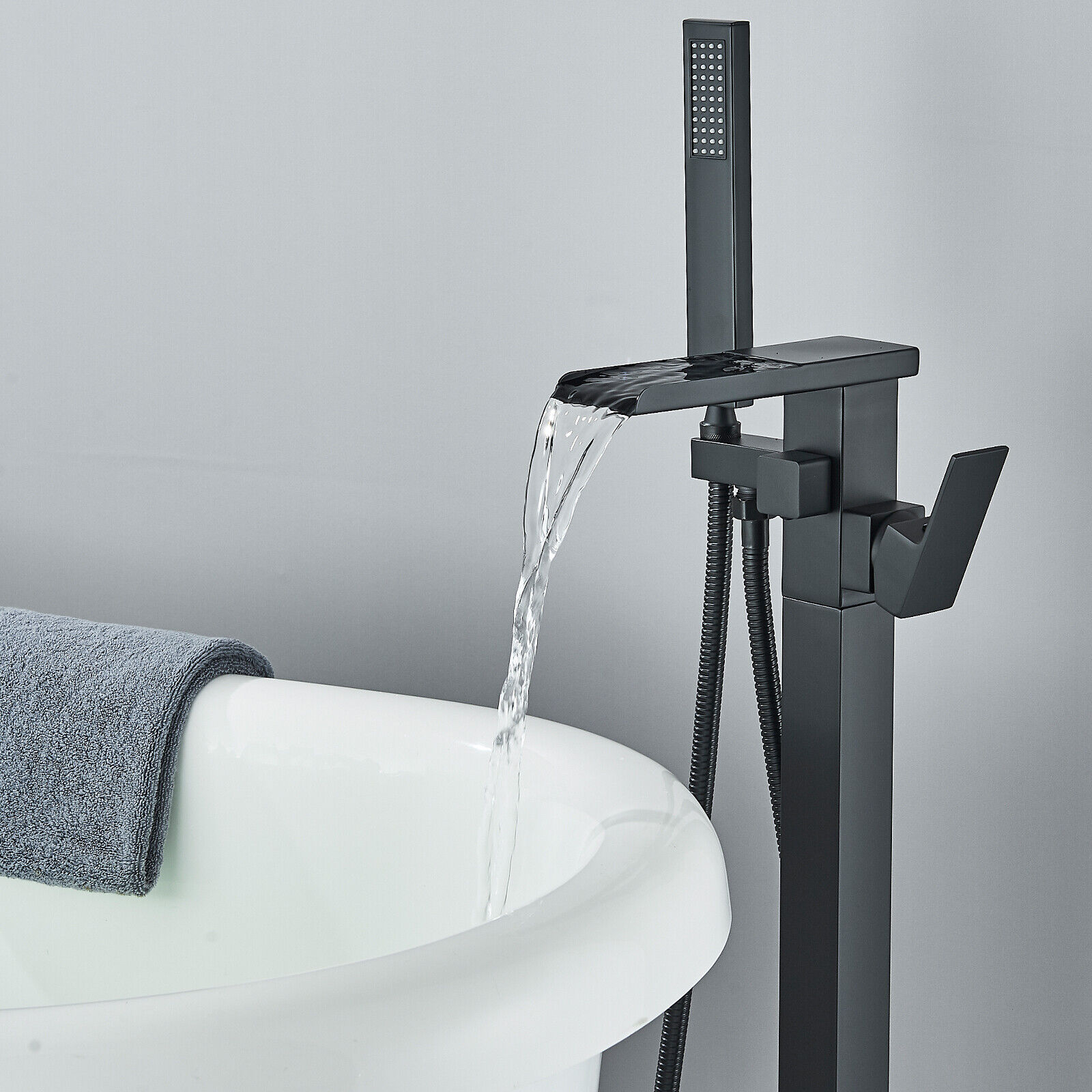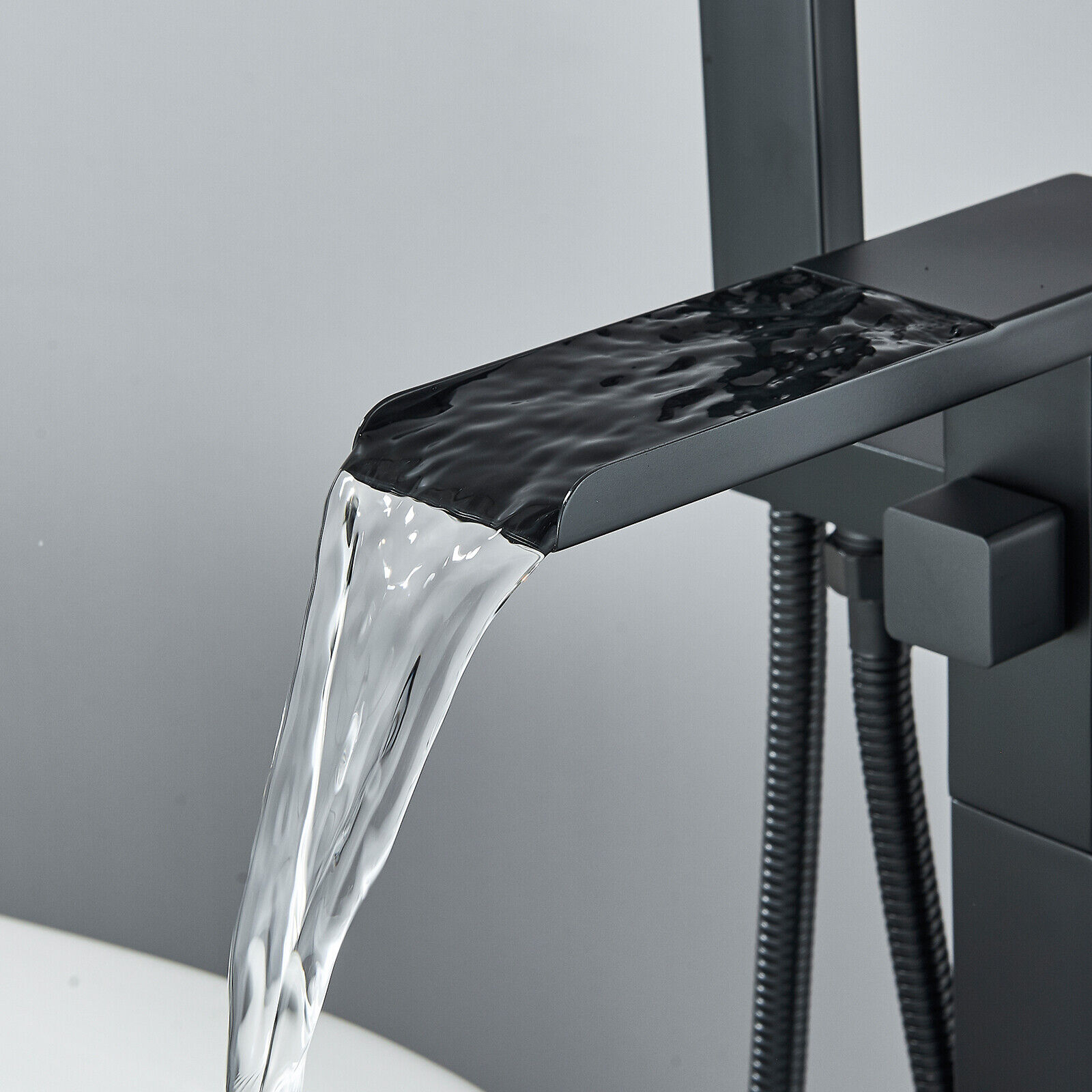 Baterie Cadă Freestanding – 102 cm, Montaj pe Podea, Cadru Pătrat, Finisaj Negru Mat, Pipă Cascadă