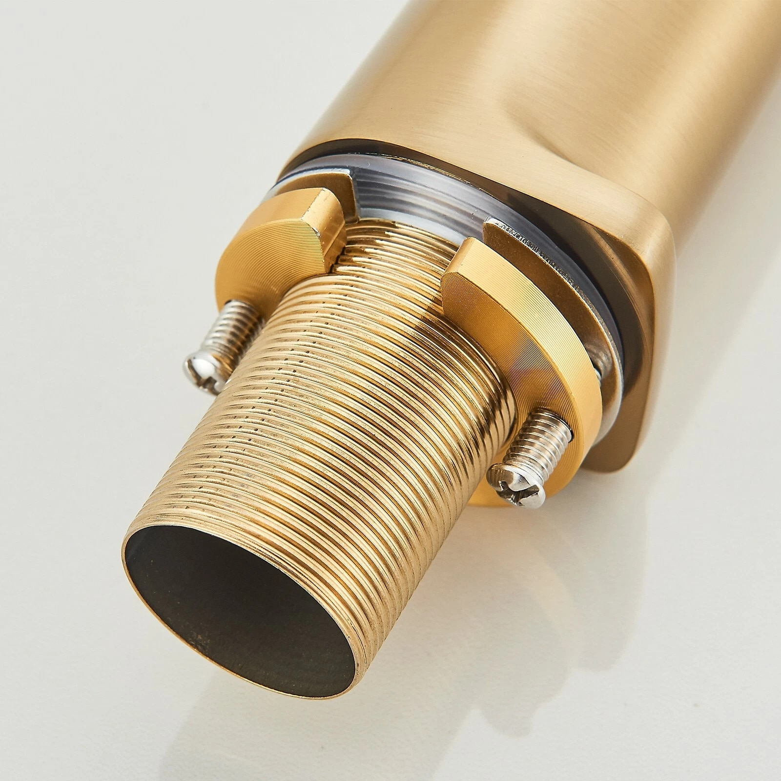Această baterie pentru chiuvetă de baie aduce un plus de eleganță și funcționalitate oricărei băi moderne. Cu o dimensiune compactă de 31 cm și un finisaj auriu mat, produsul nu doar că îmbunătățește aspectul estetic al spațiului, dar oferă și o experiență de utilizare plăcută și eficientă. Realizată din alamă robustă, bateria este rezistentă la coroziune și uzură, garantând o durată de viață extinsă și performanță constantă.
