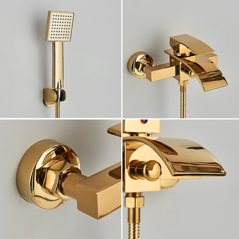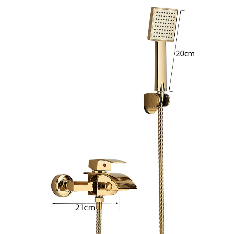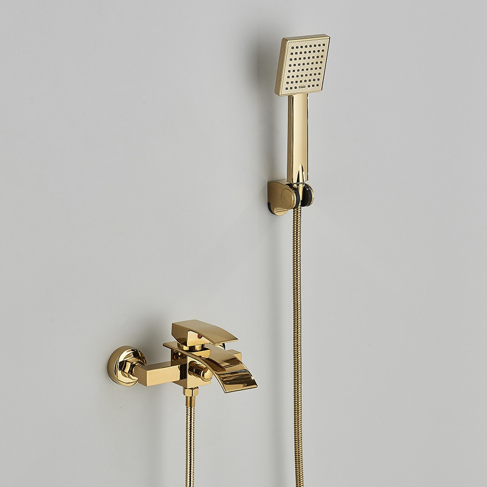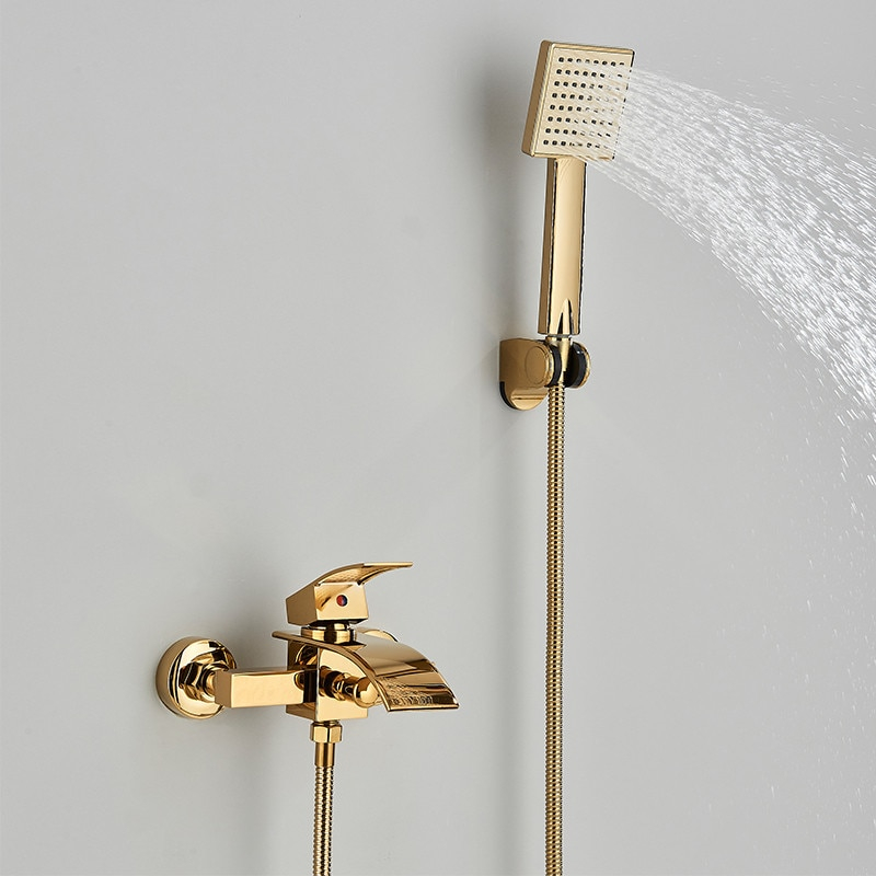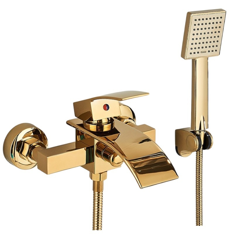 Baterie de Dus/Cada BisDesign®, Pipa Tip Cascada, Finisaj Auriu Lucios, 2 Functii de Curgere
