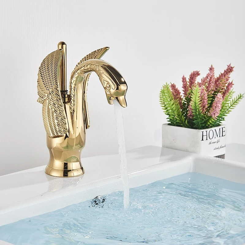 Baterie pentru Lavoar “Lebăda” – 19 cm, Finisaj Auriu Lucios