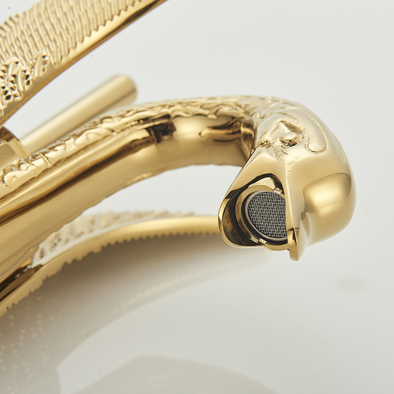 Adaugă un plus de eleganță și rafinament băii tale cu bateria pentru lavoar “Lebăda”, un model cu design elegant și finisaj auriu lucios. Cu o înălțime de 19 cm, aceasta se integrează perfect în băile moderne sau clasice, fiind ideală pentru cei care apreciază detaliile de calitate superioară.