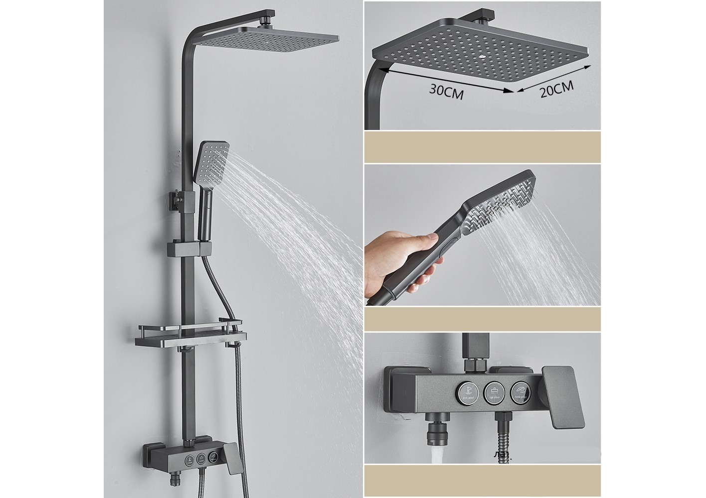 Fabricată din alamă solidă, coloana de duș garantează rezistență sporită la utilizarea zilnică și la coroziune. Suprafața sa, tratată prin galvanizare în mai multe straturi, are un finisaj gri antracit mat, elegant și rezistent la amprente, păstrând un aspect impecabil pentru timp îndelungat.
