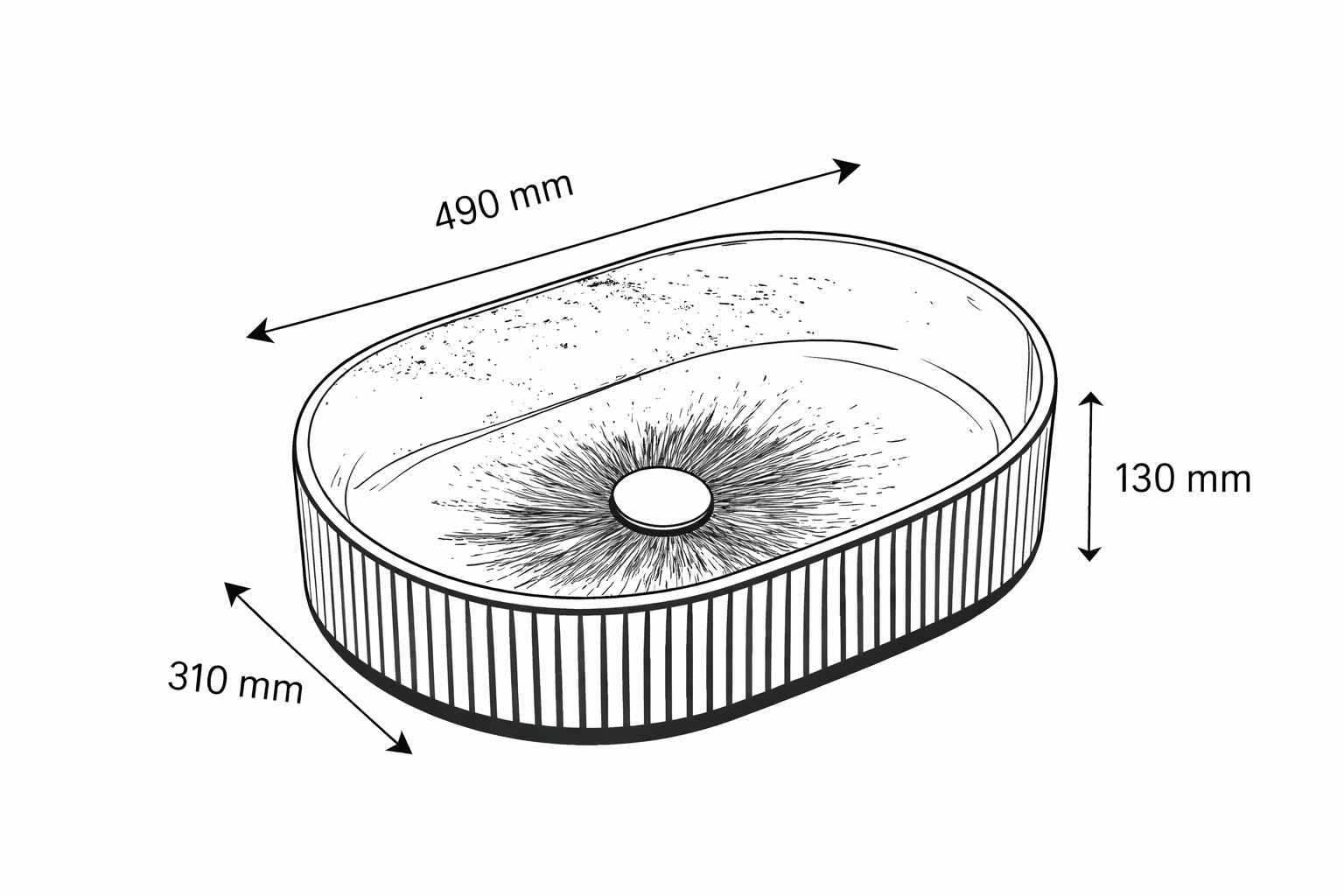 Lavoar de baie pe blat BisDesign®, realizat din ceramică sanitară premium, cu finisaj negru lucios și decor auriu artistic cu efect radial spectaculos. Forma ovală elegantă, combinată cu striațiile verticale exterioare și accentele aurii, transformă acest lavoar într-o piesă statement, ideală pentru băi luxury, sofisticate sau cu design artistic. Ventilul de scurgere negru inclus completează armonios aspectul modern și funcționalitatea produsului.